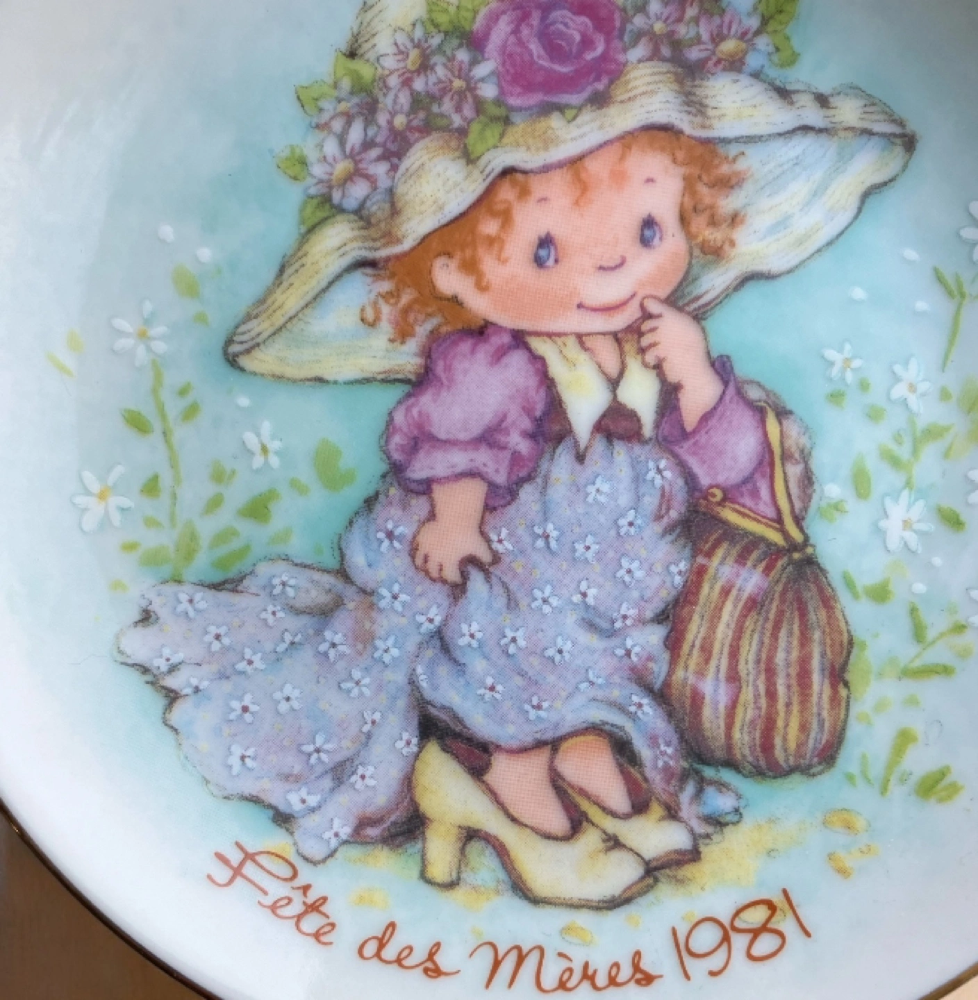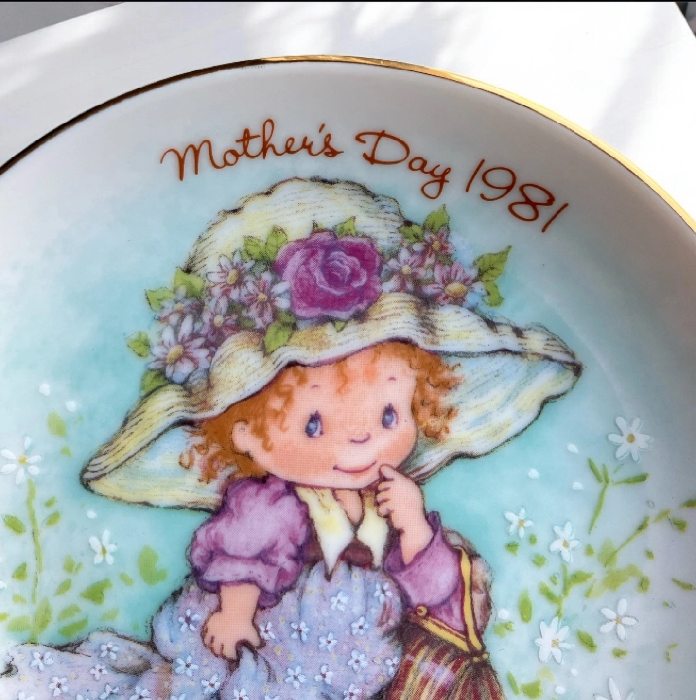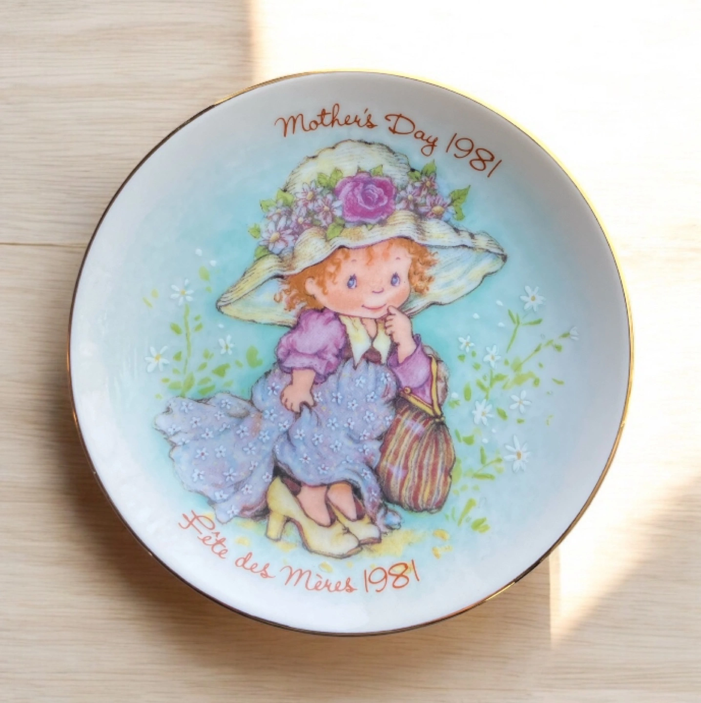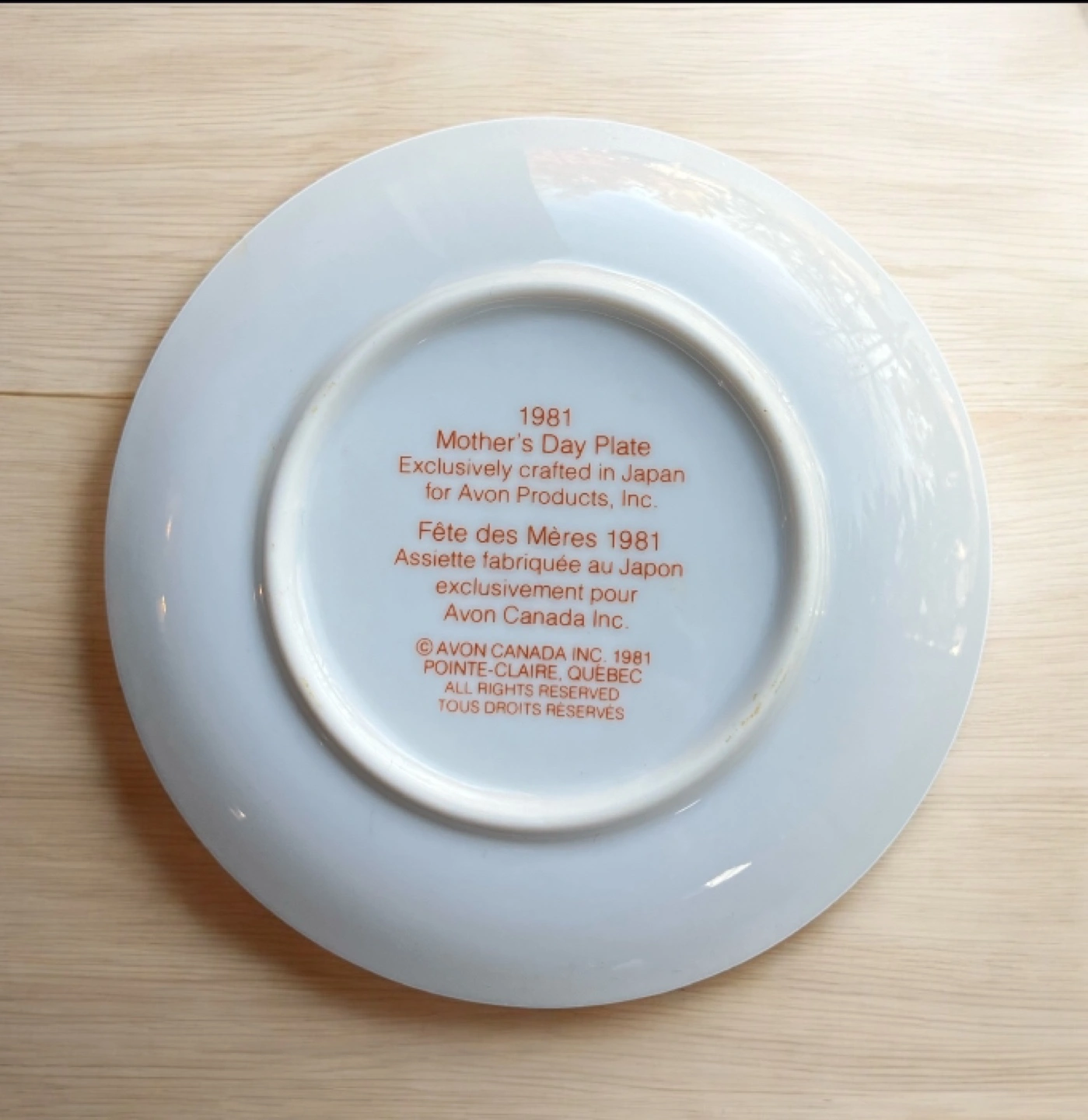 Excellent preowned condition. Vintage from 1981 collectible AVON Mother's Day decorative plate is written in both English & French language. Has gold trim and shows a little girl dressed in her mom's clothes. So cute! Great collector piece. Measures approximately 5" D. I ship using recycled mateiral within my home to reduce waste. The package will be wrapped with care if requested or deliver for a fee