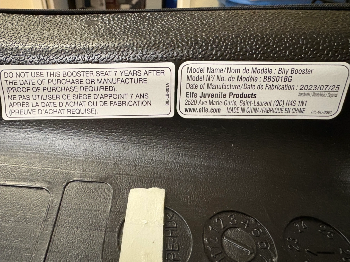 Booster seat, comes with instructions. Manufacture date: 07/25/2023