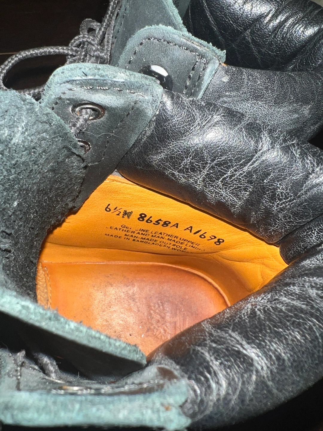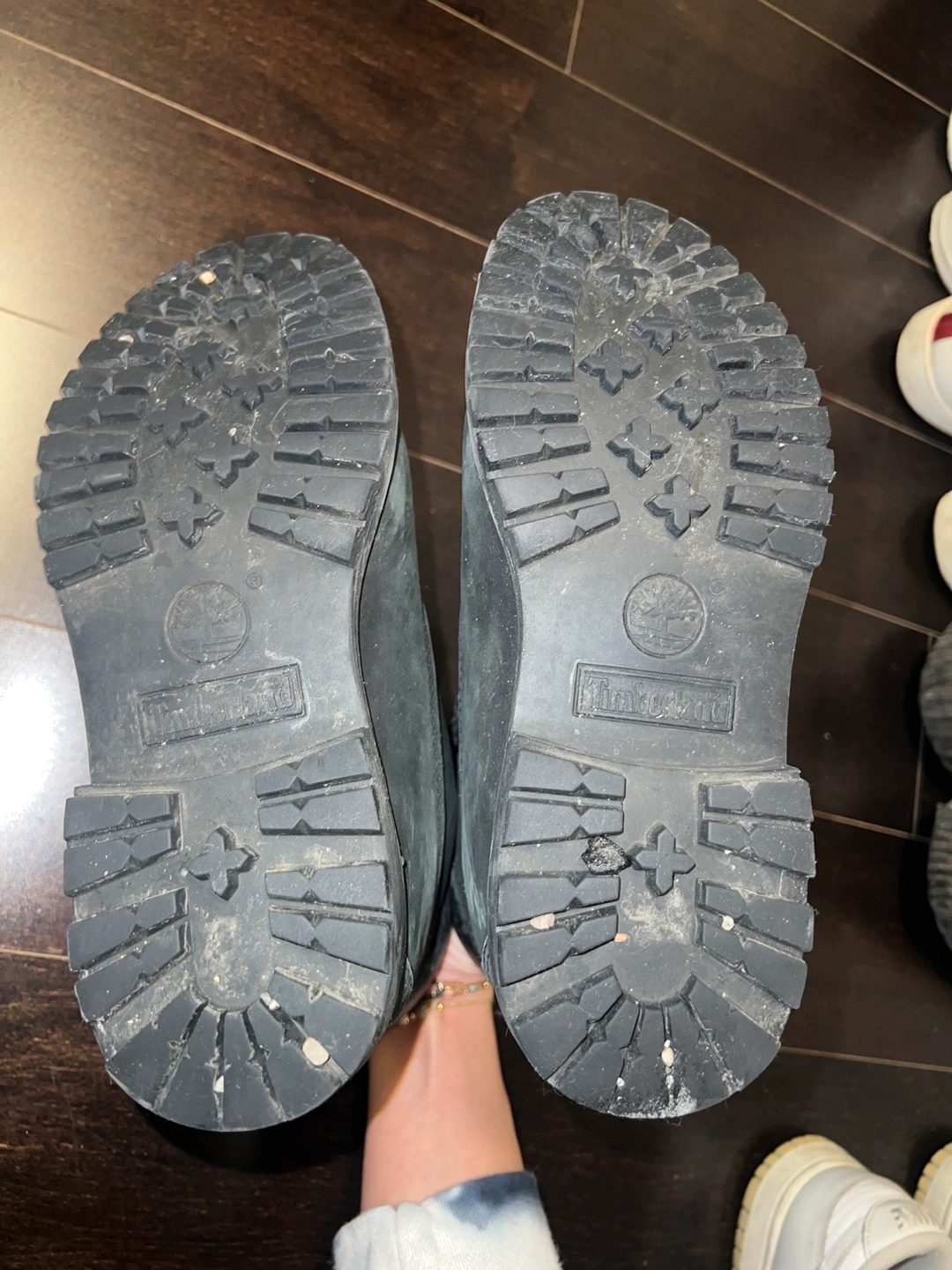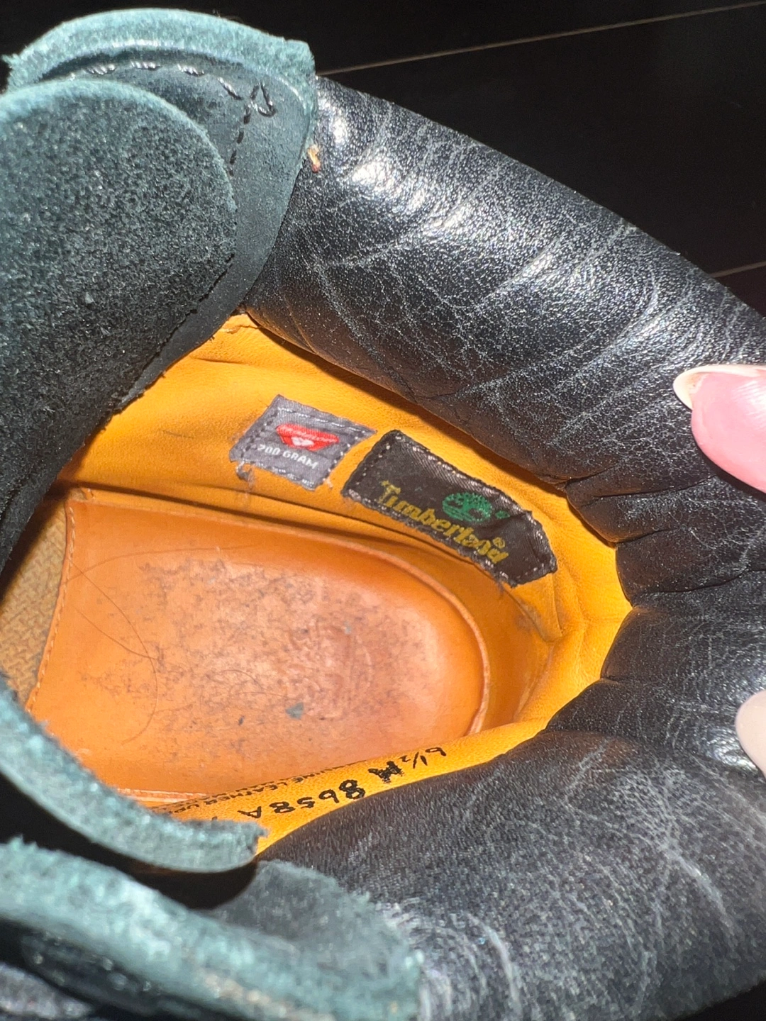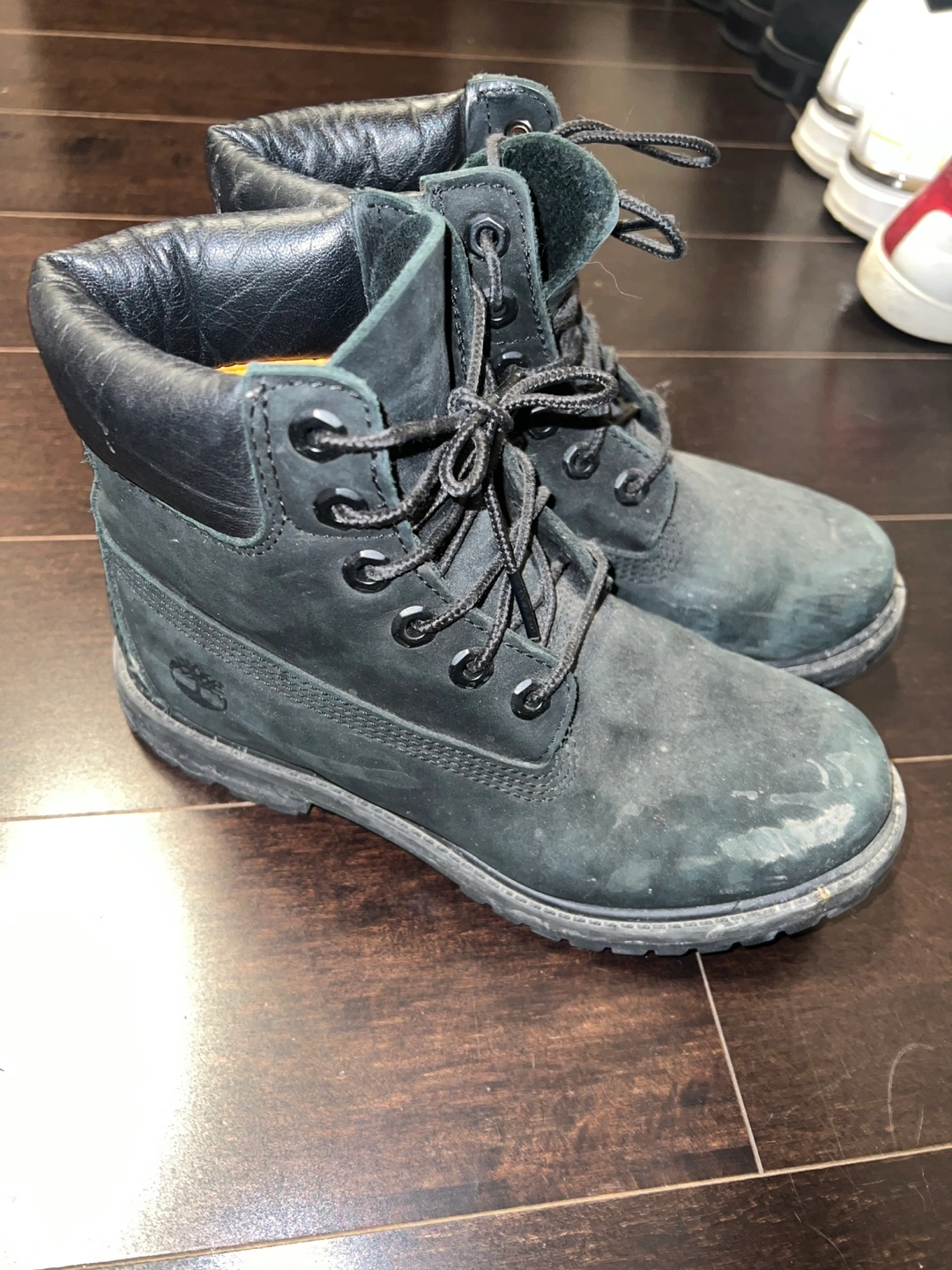 Black leather boots with laces. Some wear and tear on the leather, but still wearable. Just need a good clean. Size 6.5 women
