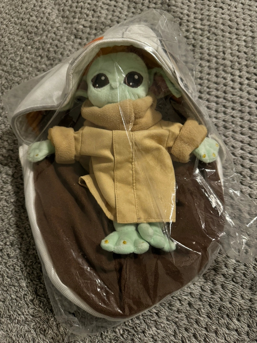 The Child plush toy in its carrying case. New with tags. STAR WARS BABY YODA THE CHILD The Mandalorian in Hover Pram Plush DISNEY STORE