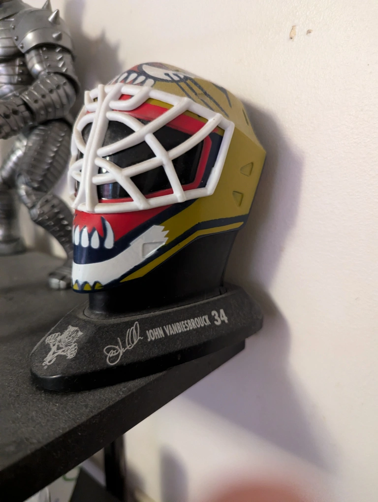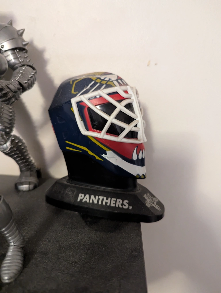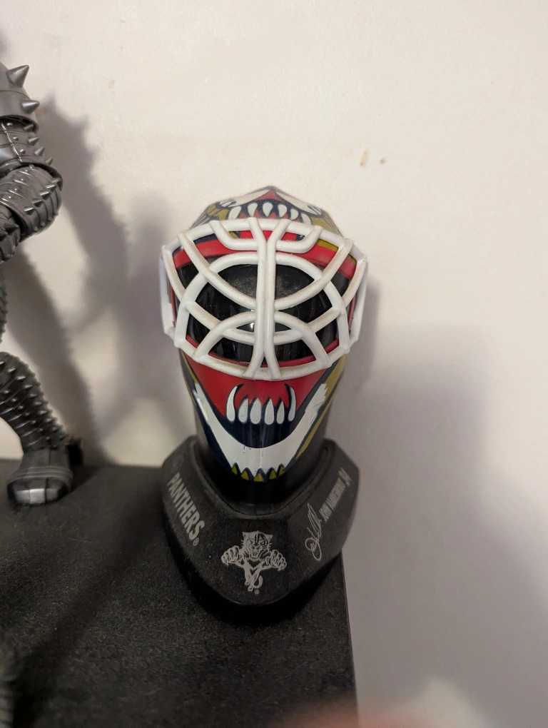 Replica of Florida Panthers goalie mask. Comes with a stand. It's in great condition. Pickup only. The price is firm and non-negotiable. I accept cash or e-transfer only. I'm located in the Etobicoke area near Scarlett road and Eglinton Avenue West at 25 Richview Road. Please only contact me if you are seriously interested in buying thank you. Also please feel free to check out my other listings.