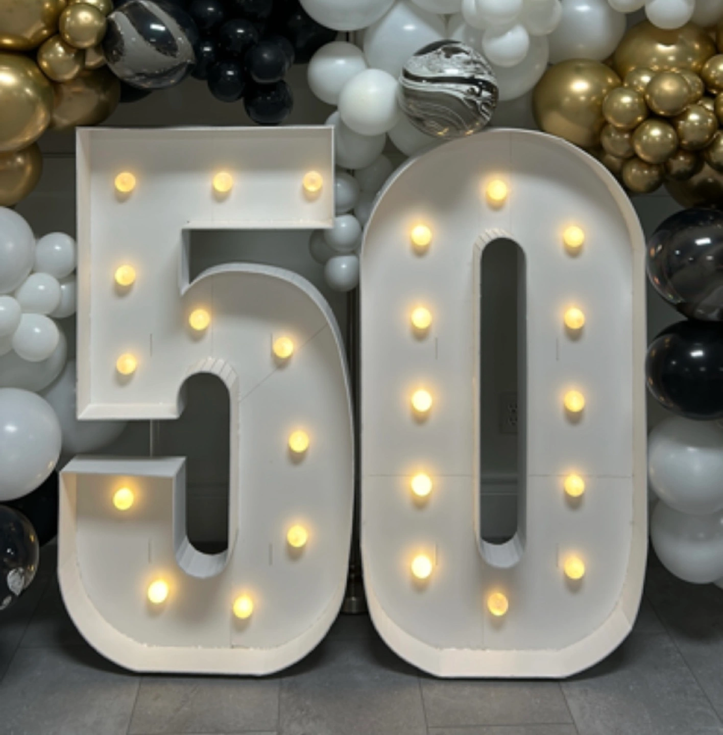 Large light up numbers 50 and 70. White with bulbs. Perfect for a birthday party. For rent $35 each