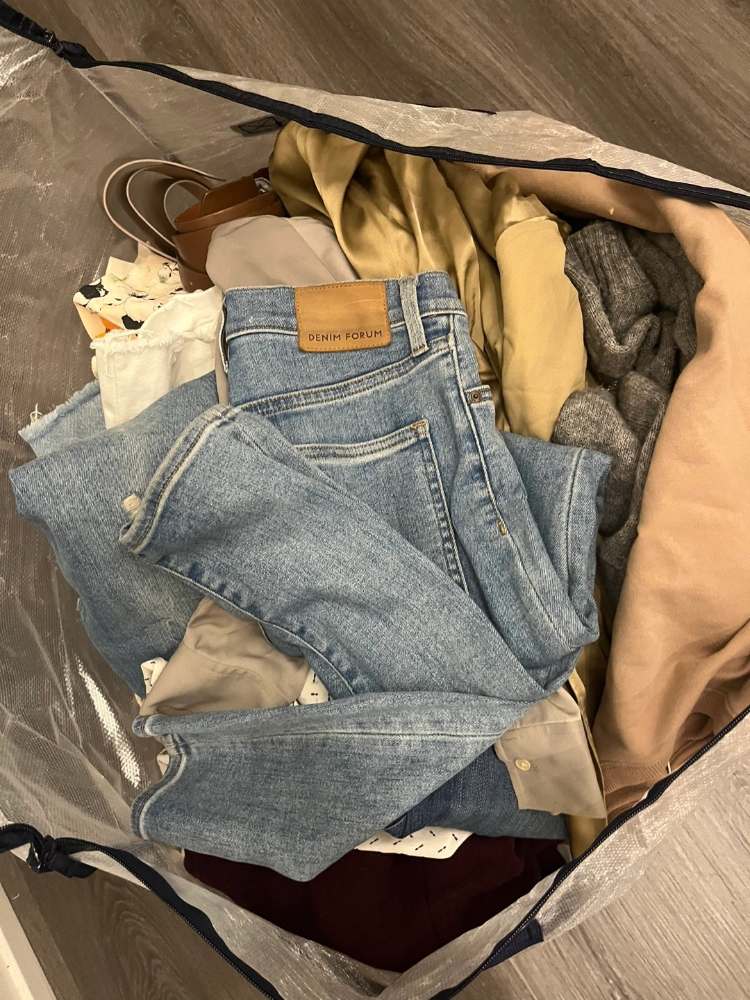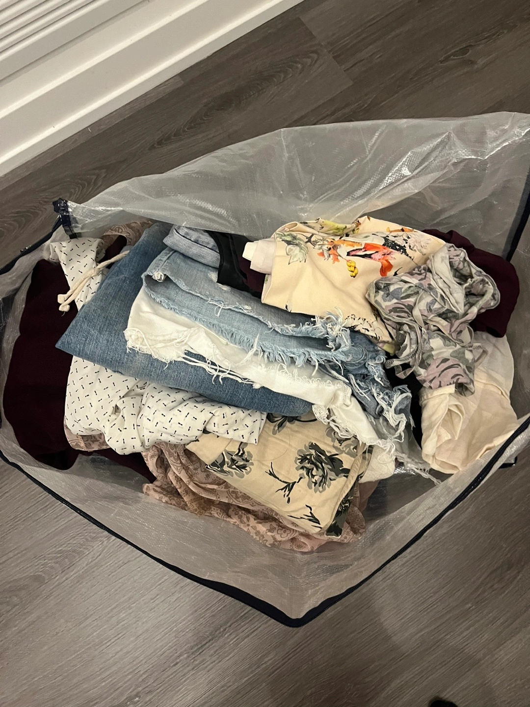 Bundle of women's clothing, including a burgundy jacket, several jeans, shirts, tanks, shorts and a sweater. All sizes are small or extra small. Jeans size 24-25. All saints Aritzia Jbrand Club Monaco