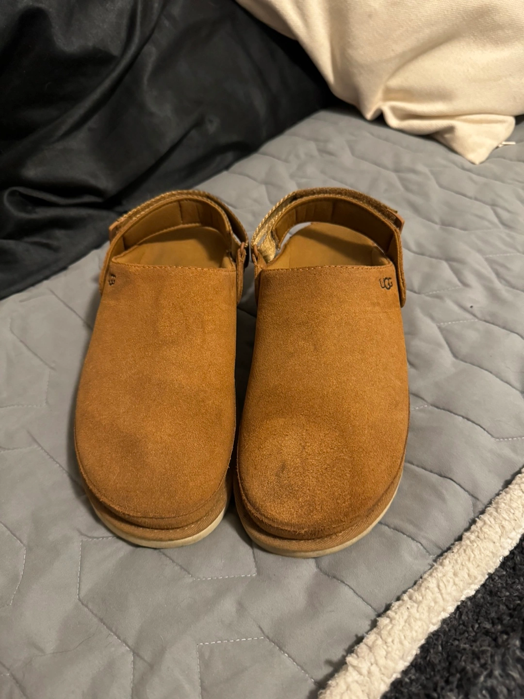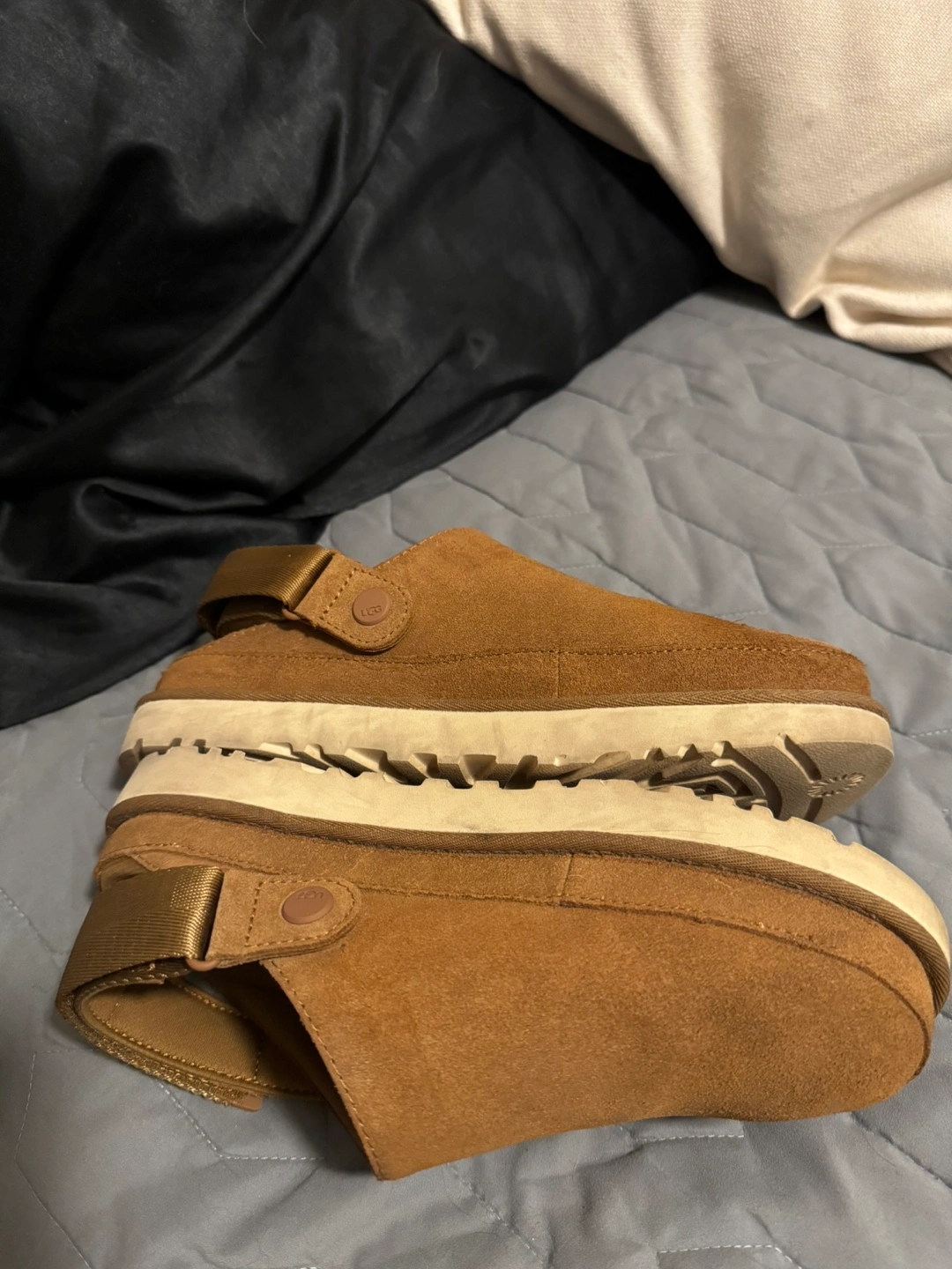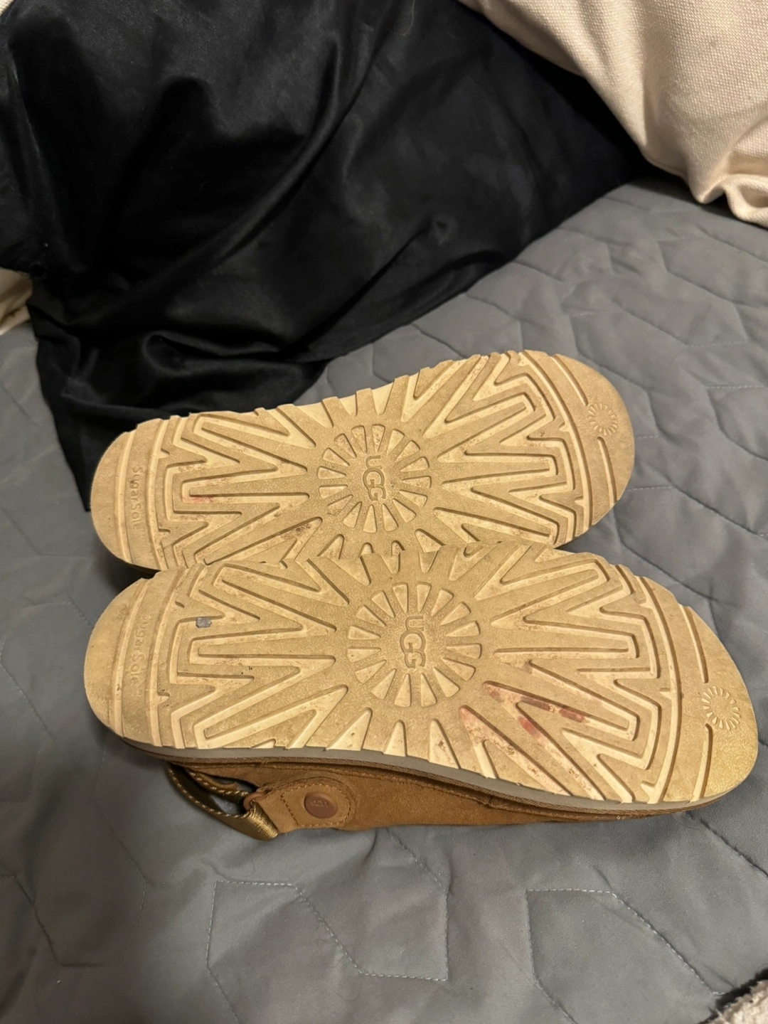 Left toe has stain - has attempted to be cleaned - maybe someone better at cleaning Uggs could fix
