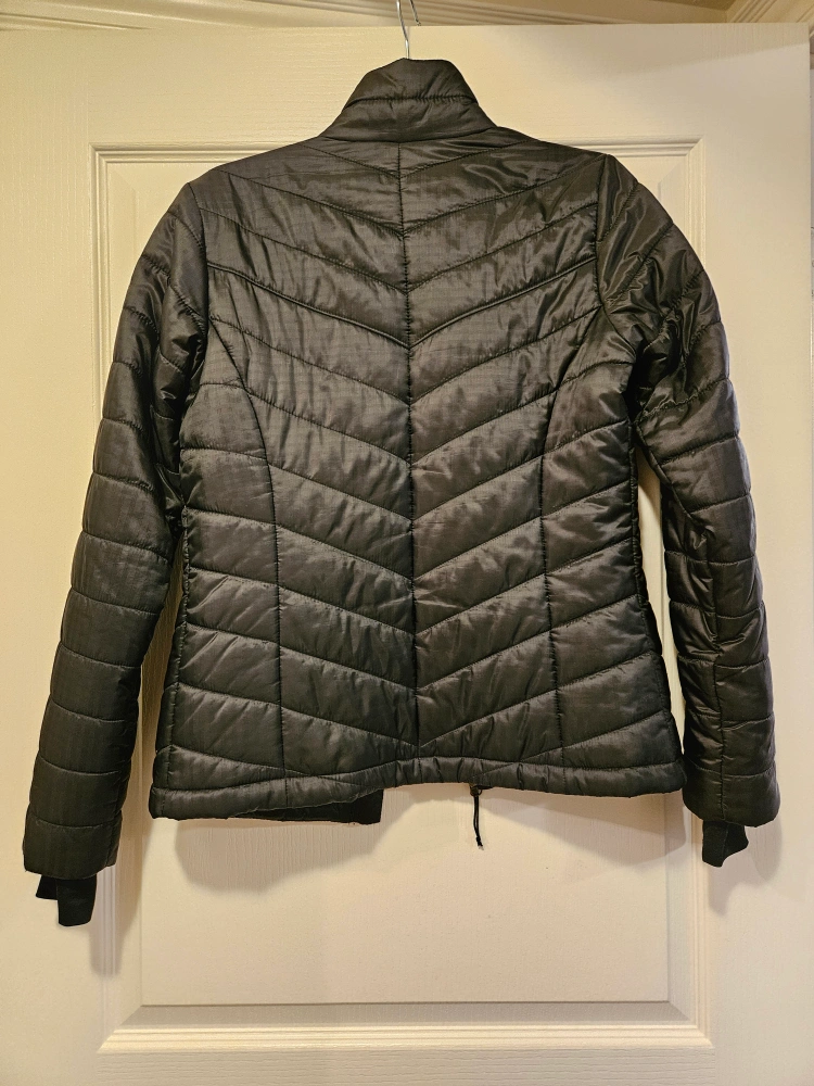 Black jacket with a zipper closure, two pockets on the front, and one inside pocket. The jacket has a quilted design. Gently worn, in great condition. Omni heat lining and has thumbholes **If this posting is up then it is still available** Pick up only at 20 church avenue, north york (outside metro store) Cash please