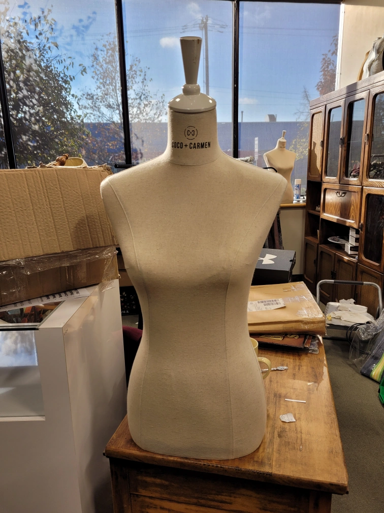 Fabric covered disply form with nO stand. Bust only, table top style. two available. price is per each. Must pickup. Please. no etransfer or long holds. this is a cash price. bring cash. This is in storage and I will meet you there. I can access the building during 8 to 430 Monday to Friday. No one is there outside of those times.