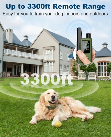 Waterproof and rechargeable dog training collar. Adjustable for dogs 10-120 lbs. Includes remote with multiple training modes.