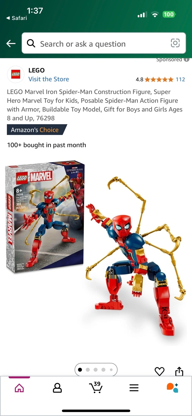 LEGO Marvel Iron Spider-Man construction figure. Posable action figure with armour. 303 pieces. For ages 8 and up. Cash only Pickup only Brand new in seal box