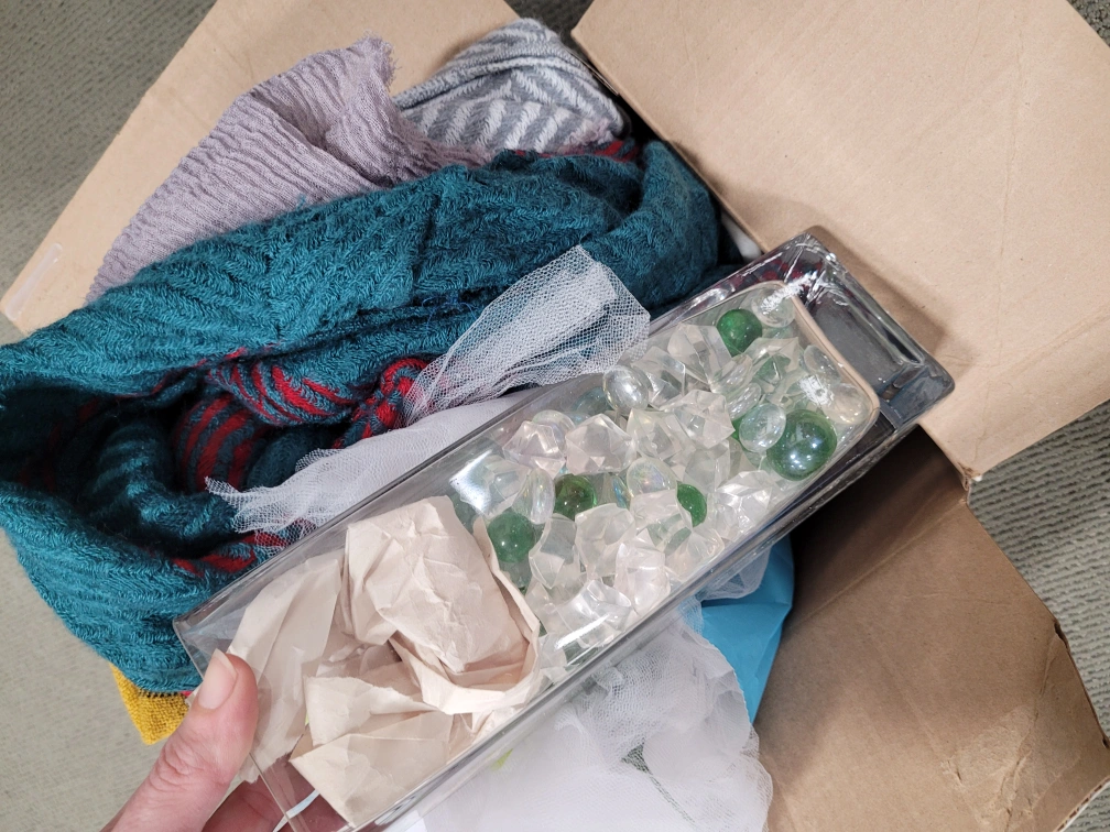 only message me if you are ready to come get it. Blue ez kleen 12 amp stick vacuum Last call on the 4 scarves i posted (yellow with a pull, never worn) plus adding a vaccume and the supplies for the type of game you make wedding hats veils crowns at a wedding shower. Hair ties, loose fake flowers and craft tulle. Vase with glass beads. Must take all today before 430pm. Adding a few kitchen things to the box today too. Carlingview and attwell drive. Dm for address if you can come now before i drop somewhere for donation.