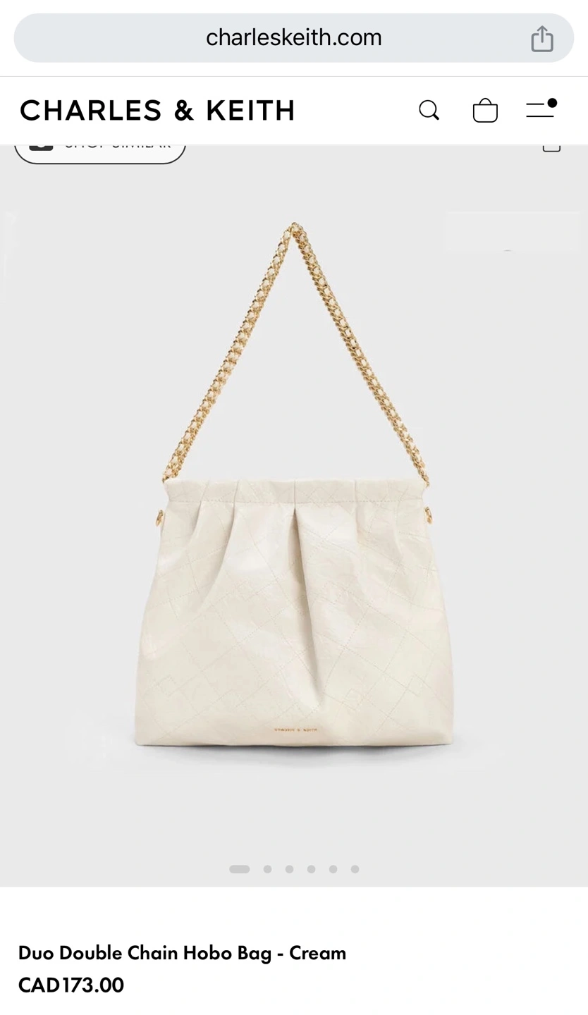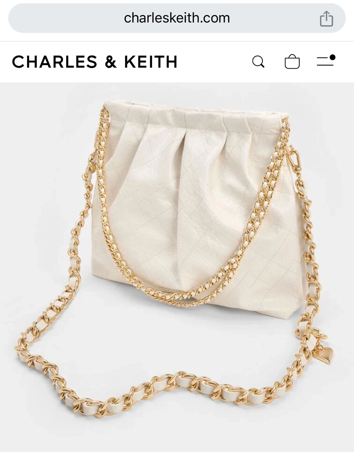 Cream coloured bag wrinkled effect with 2 gold chain straps. There is an extra / thicker chain that has not been used. Magnetic closure Includes a small matching pouch. Comes with a dust bag Used only Once. Can pass as brand new