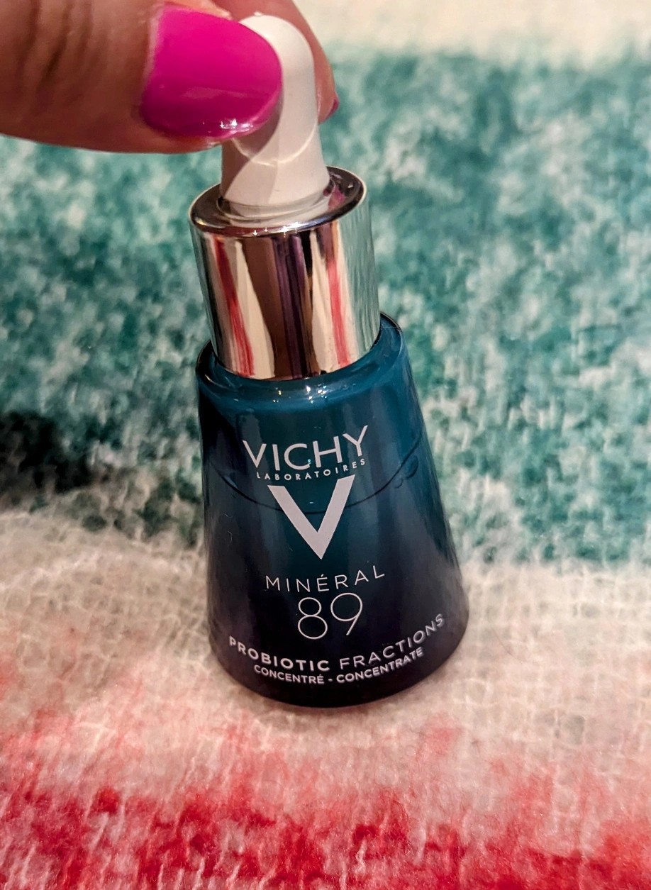 Used a twice. Size: 30ml. (85% of the bottle left) Retail price $58 with tax. A regenerating and repairing booster powered by probiotic fractions grown in Vichy Volcanic Water and enriched with soothing niacinamide (Vitamin B3) to correct visible signs of stress on skin. Comes from a pet free and smoke free home :)