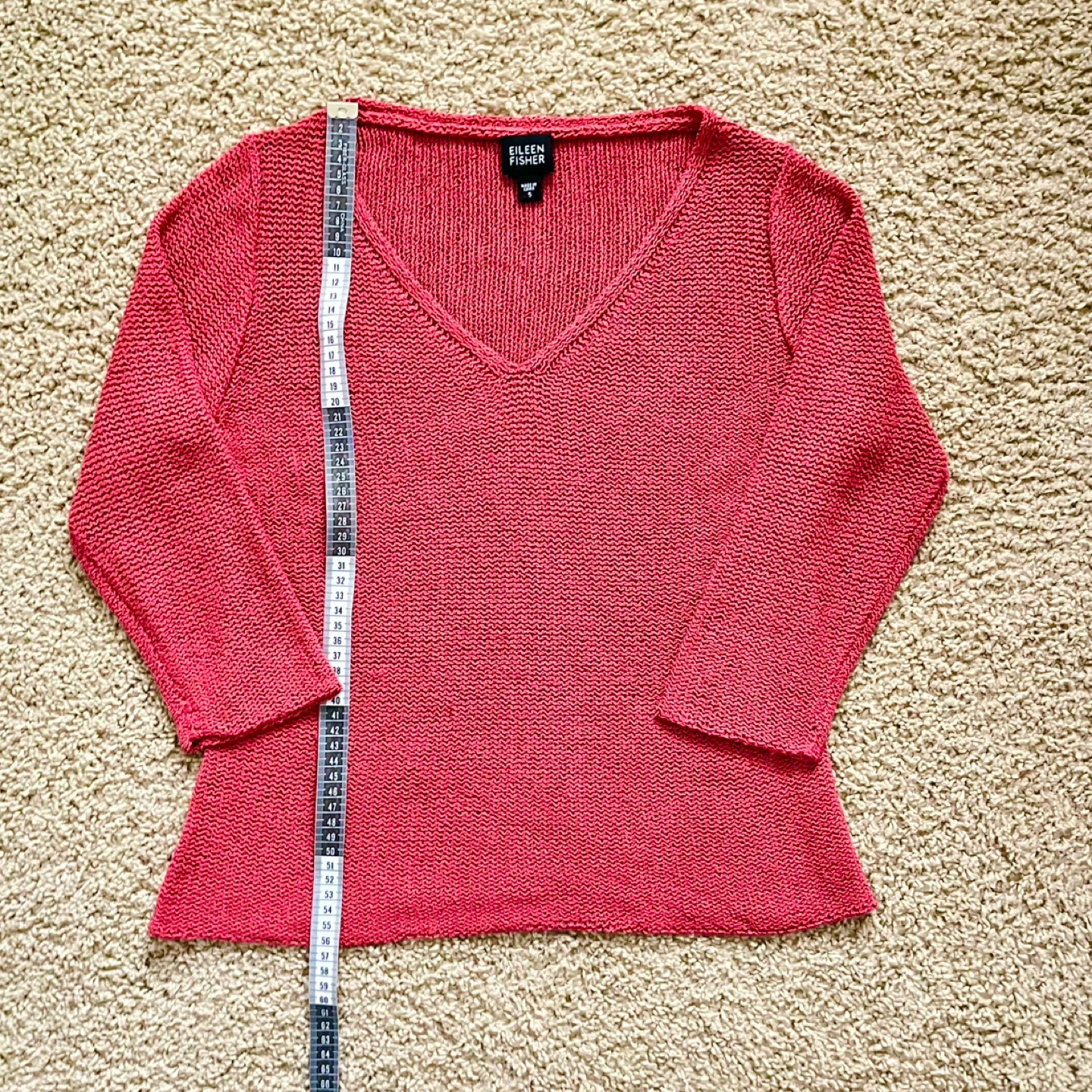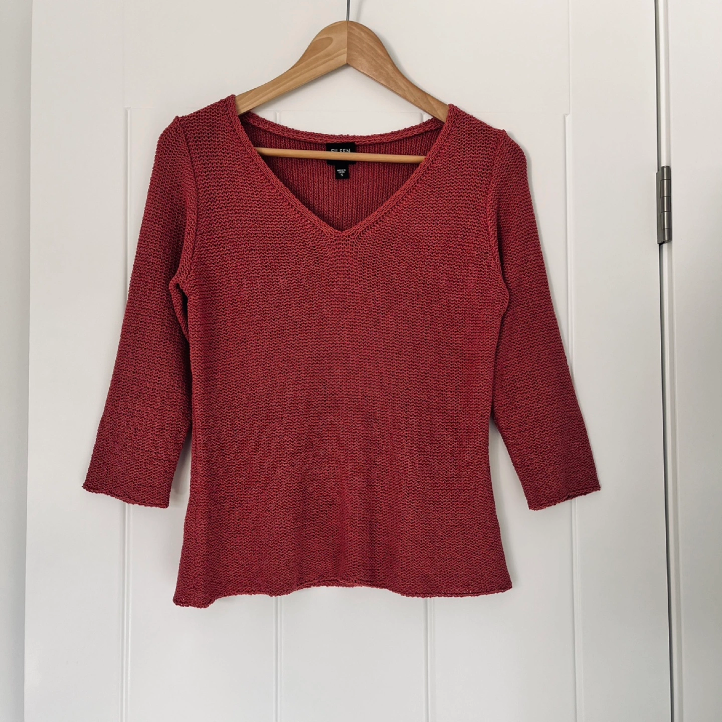 Eileen Fisher v-neck sweater with 3/4 sleeves. Made of 100% Silk. Porch pick up west Maple Ridge.