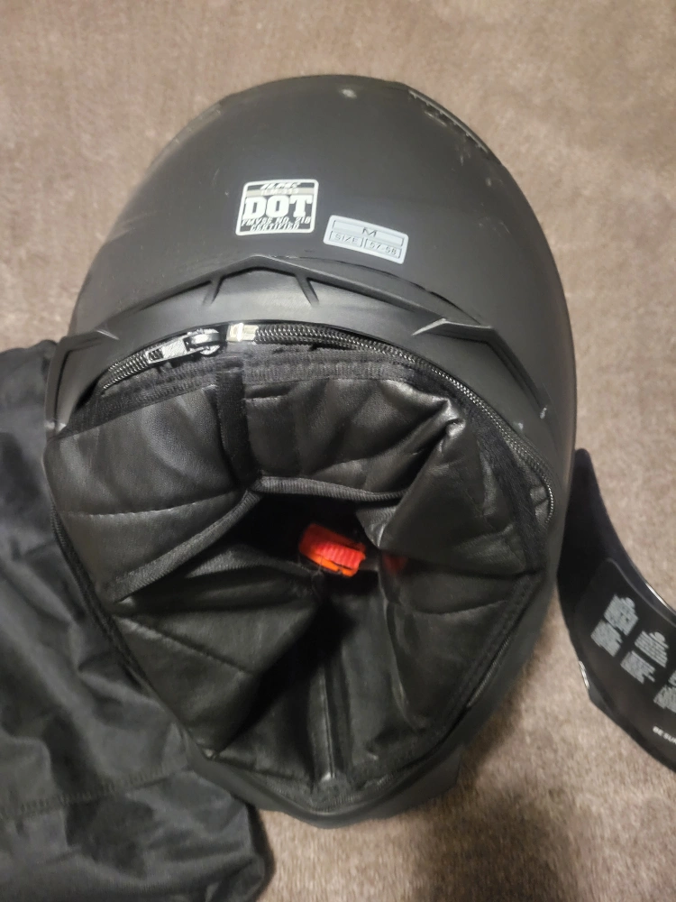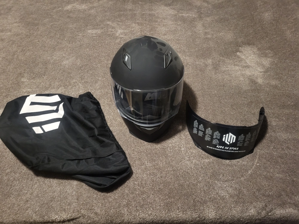 Show allBlack motorcycle helmet with a clear visor. Includes a helmet bag and a spare visor. DOT certified. never worn before brand new. $50.00 OBO