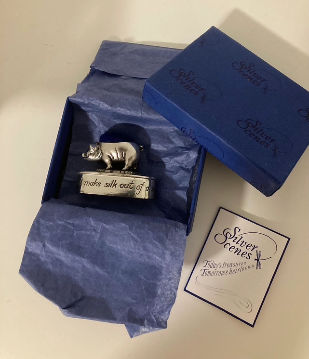 BNIB silver plated pewter pin cushion and storage box. Comes in original gift box. Purchased in the UK for £30 but has never been used. Features old proverb “one cannot make silk out of a sow’s ear”. A perfect, delicate and quirky one of a kind gift ! See pics for details. SFPF home. Pick up available some daytimes at University and Dundas, or evenings and weekends from Kingston road and Dundas street east.