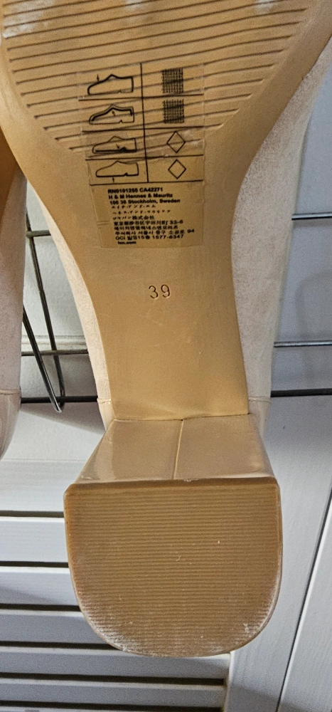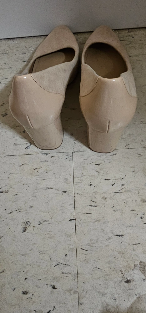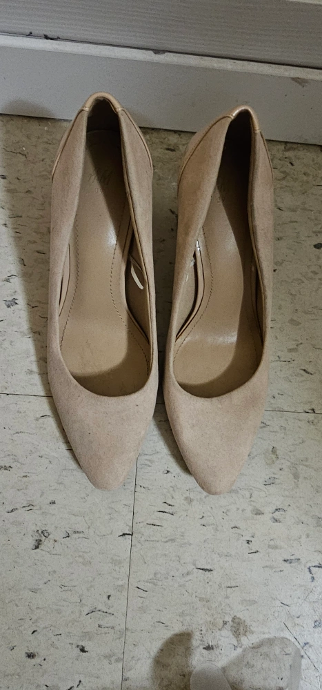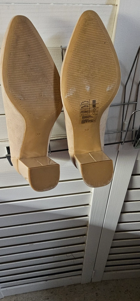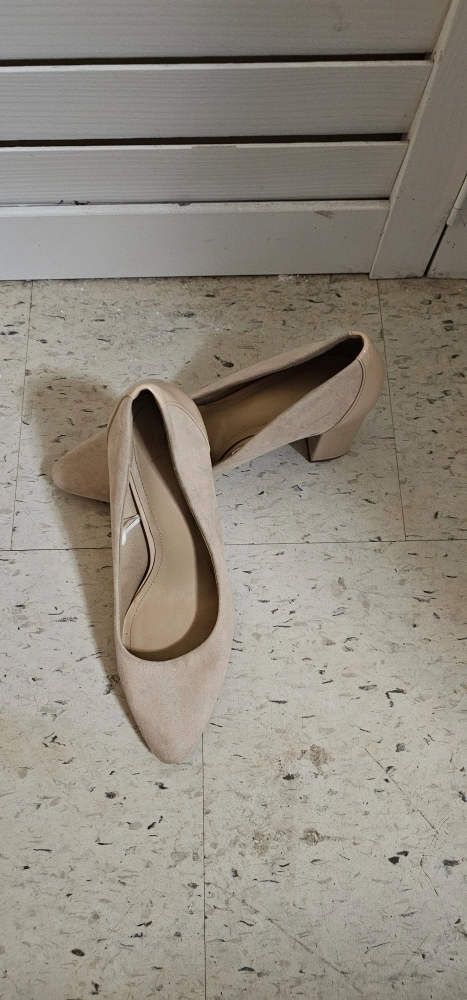 Beige suede pumps with a block heel. Size 39.