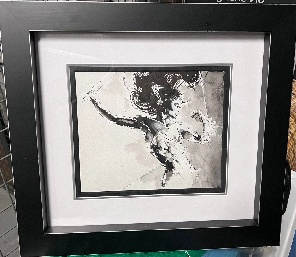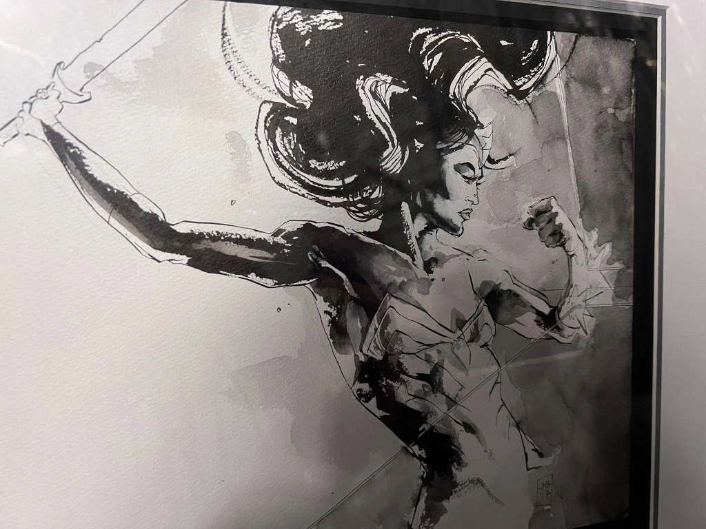Professionally framed Around 45x40cm wonder woman original sketch with inks black wood frame wonder woman DC Comics Comic Book Graphic Novels superhero artwork "Jonathan Marks Barravecchia is an illustrator and painter originally from Richmond, VA. In addition to his creator-owned comics, Jonathan has worked with companies including Marvel, DC, IDW, Easton Press, and Centipede Press. His work has been recognized and published in juried publicatoins including Spectrum and American Illustration, and he shows his paintings at The Philippe Labaune Gallery in Chelsea, NY. Jonathan lives in Hudson Valley, NY."