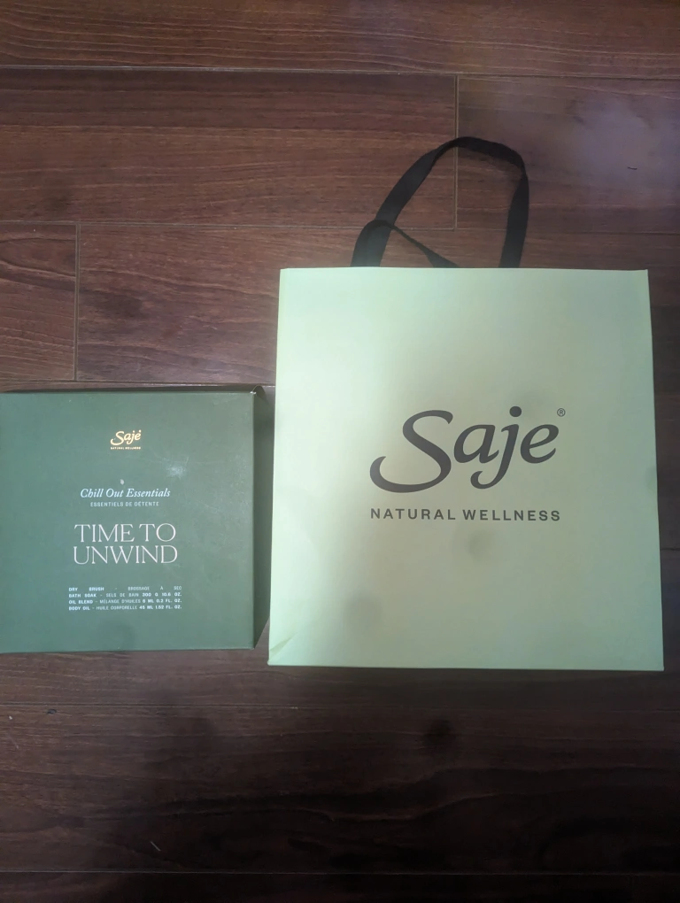 Saje Time To Unwind/ Chill Out Essential Oil Series Gift Set. Four pieces . Includes : 1. Calm bath soak salts, 300 grams. 2. Calm body oil, 45 ml. 3. Calm roll-on essential oil. 6 ml 4. Dry wooden brush. includes Saje Tote Carry Bag. Brand new and unopened. My price is even affordable than Saje's Monthly Sale . ( If it even goes on sale ) ? For any one in the community for your self, or a gift? Birthday, Holidays gift, Thank you, Appreciation? Better than sales Black Friday Sale which is now over until sales on Boxing Day, but my deal is still on! And extended time to save ! Going Fast I have one left. $ 25 Please check out my other listings. Thanks.