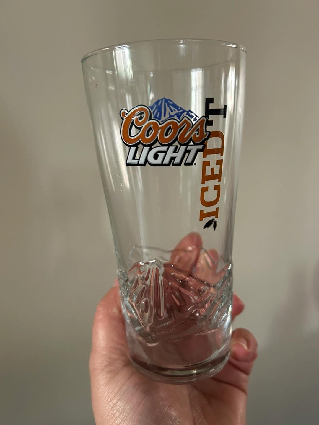 14 oz glass. Brand new, never used. In original box has been opened, slight tear .