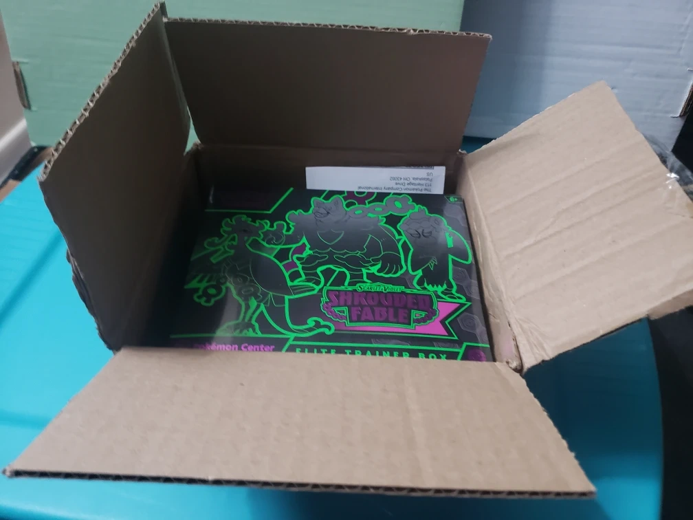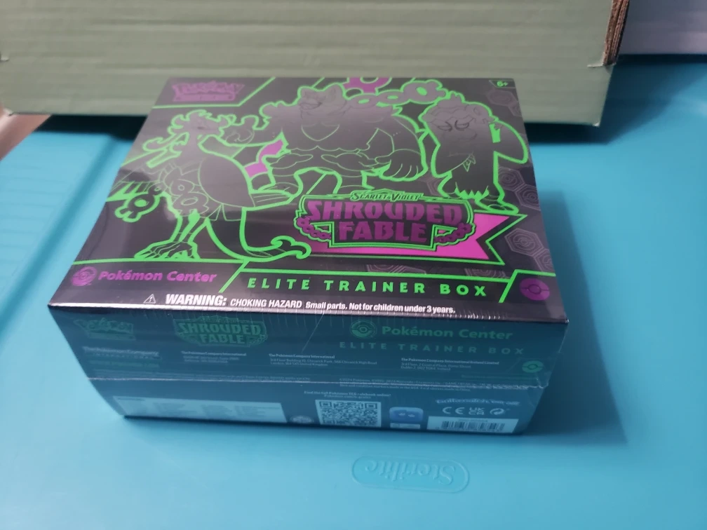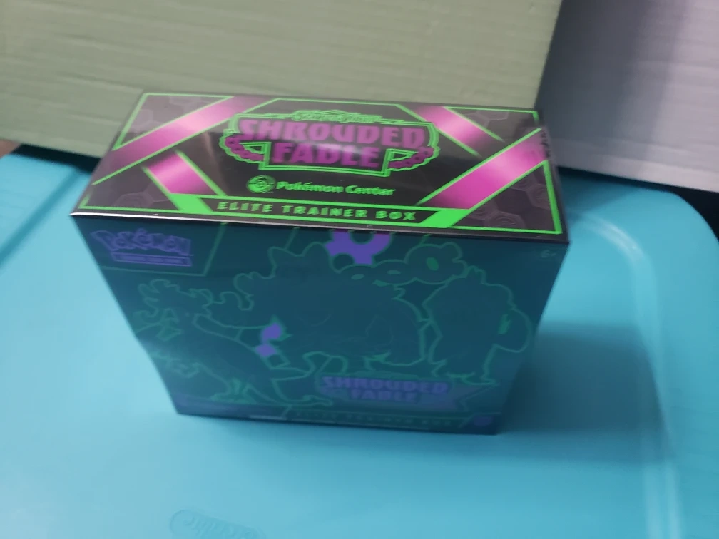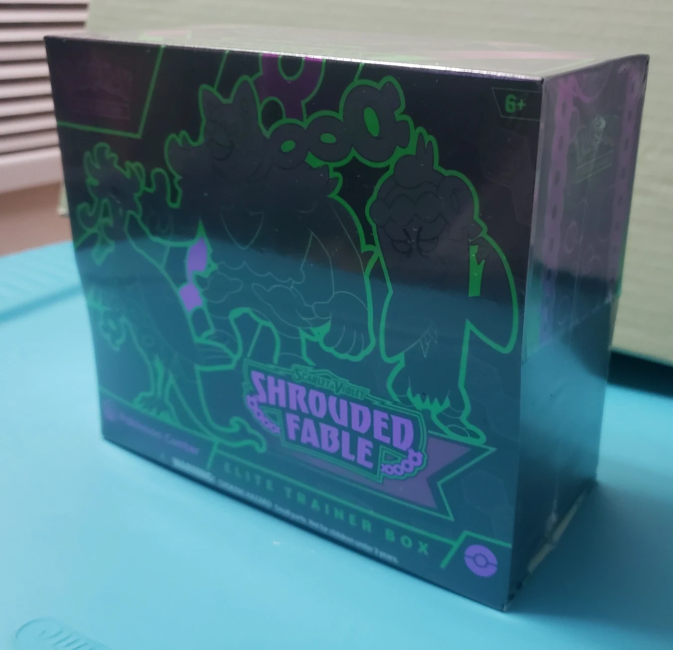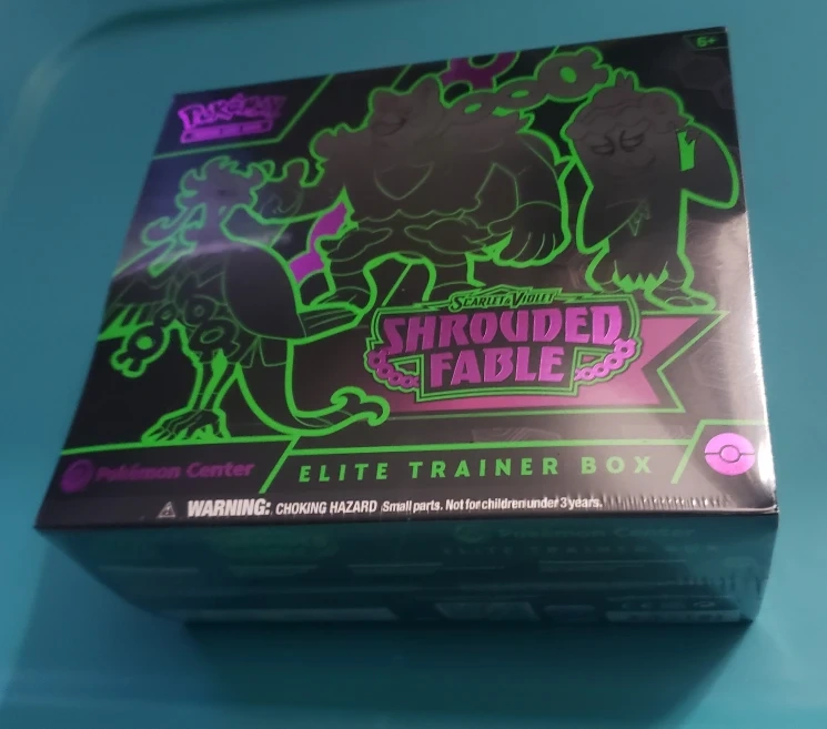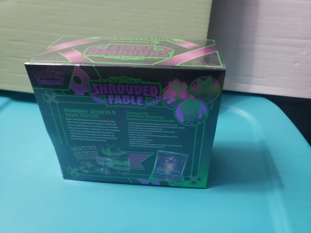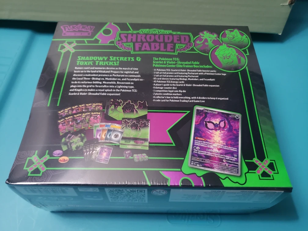 New, Unopened, Price is what I paid for from Pokemon center (79.99+tax+$10shipping) I forgot I had a preorder on this and left it in the closet. I only opened the shipping cardboard box to confirm that it was in good condition. Includes the following items: -11 Pokémon TCG: Scarlet & Violet—Shrouded Fable booster packs --Each Pokémon TCG: Scarlet & Violet—Shrouded Fable booster pack contains 10 cards and 1 Basic Energy. -1 full-art foil promo card featuring Pecharunt with a Pokémon Center logo -1 full-art foil promo card featuring Pecharunt -65 card sleeves featuring Okidogi, Munkidori, and Fezandipiti -45 Pokémon TCG Energy cards -A player’s guide to the Scarlet & Violet—Shrouded Fable expansion -6 damage-counter dice -1 competition-legal coin-flip die -2 plastic condition markers -A box to hold everything, with 4 dividers to keep it organized -A code card for Pokémon Trading Card Game Live Pick up only. Cash only please.