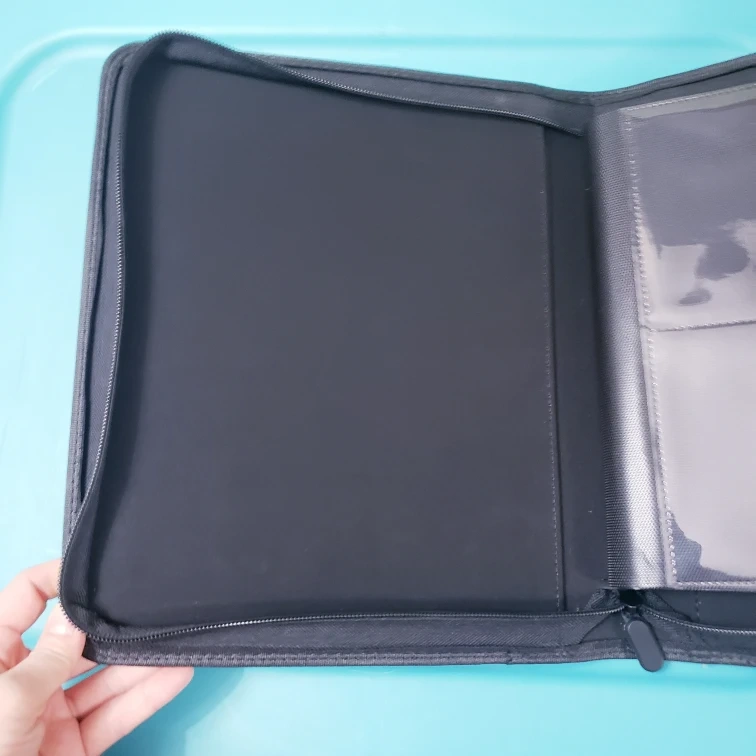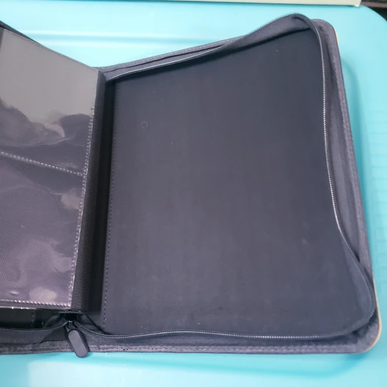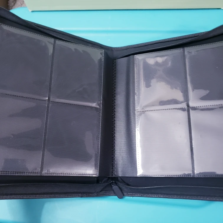 Side loading binder (sleeved cards are inserted on the side of the pocket) The pockets fit toploaded cards (cards in hard sleeves) 4 pockets per one side of the page. The binder holds 112 cards total (cards should be in toploaders to fit properly) Binder zips up all the way around from bottom to top. Slightly used but in good condition. (I used them for Pokemon cards ) Bought on Amazon - company is "D DACCKIT" Used, in Good Condition Fits 3x4 rigid card holders or toploaders Pocket size is 4.5 x 3.3 Fits 112 cards total Pick up only. Cash only please.