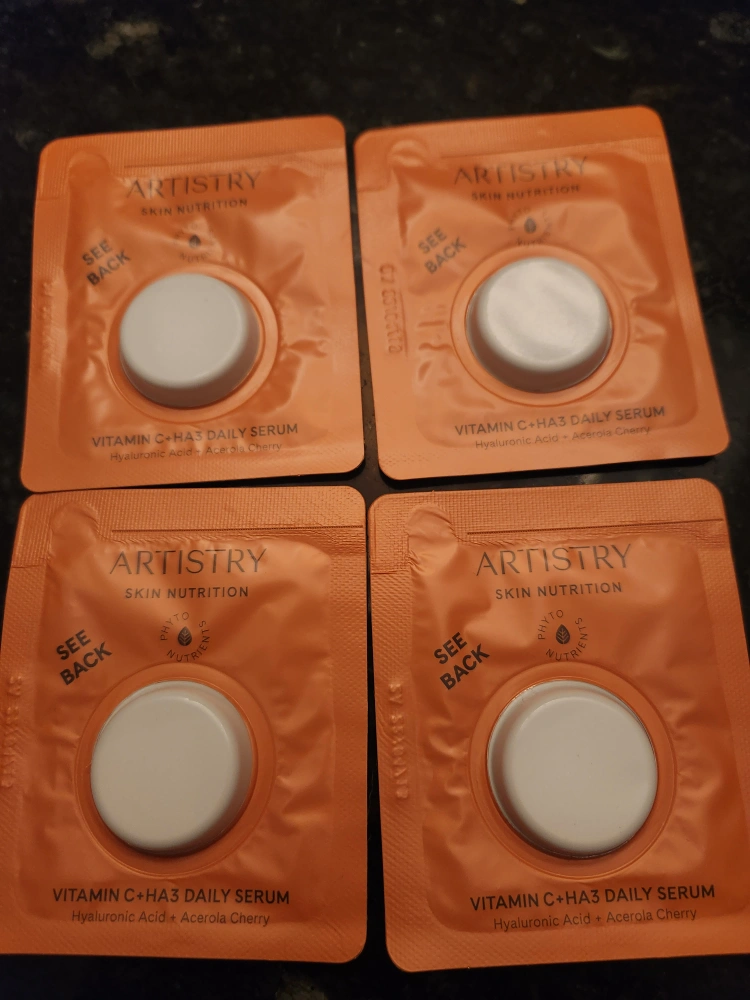 Four single-use packets of Artistry Skin Nutrition Vitamin C+HA3 Daily Serum. Hyaluronic Acid + Acerola Cherry Pick up only in the Yonge and Sheppard area. #ThrifyPicks