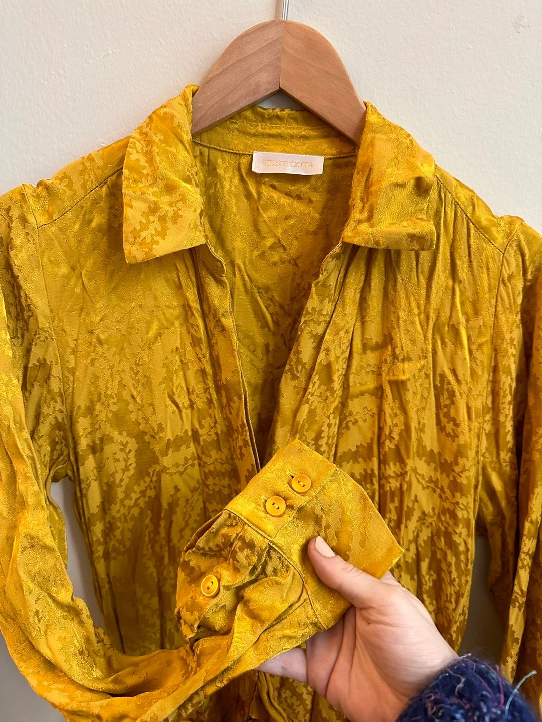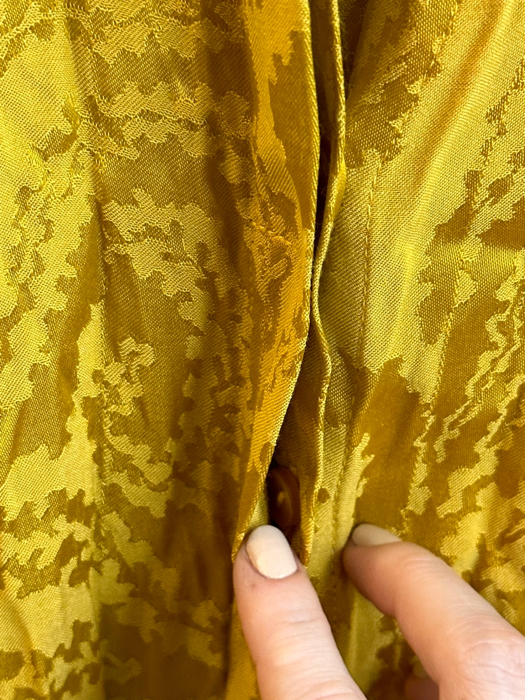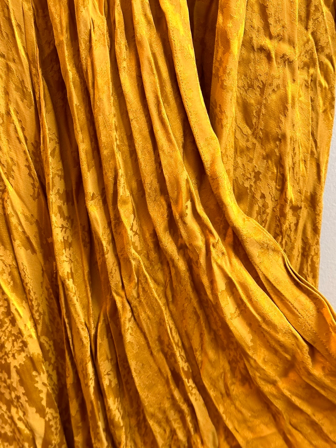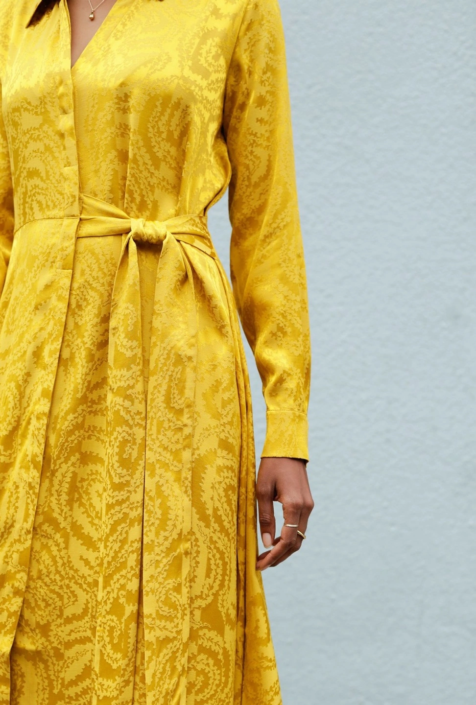 Stunning yellow gold color dress in perfetto conditions. Baily Dress in Golden Swirl print. Cut from soft woven viscose below the knee, this shirt dress features a flowy fit with a button down front, a button down collar and a drawstring at waist. It is designed in a golden yellow color woven with an all-over swirl pattern. - Never used - bought in France - 100% Viscose - Delicate machine wash, and hang dry Available for pick up Retail $440. My price $100