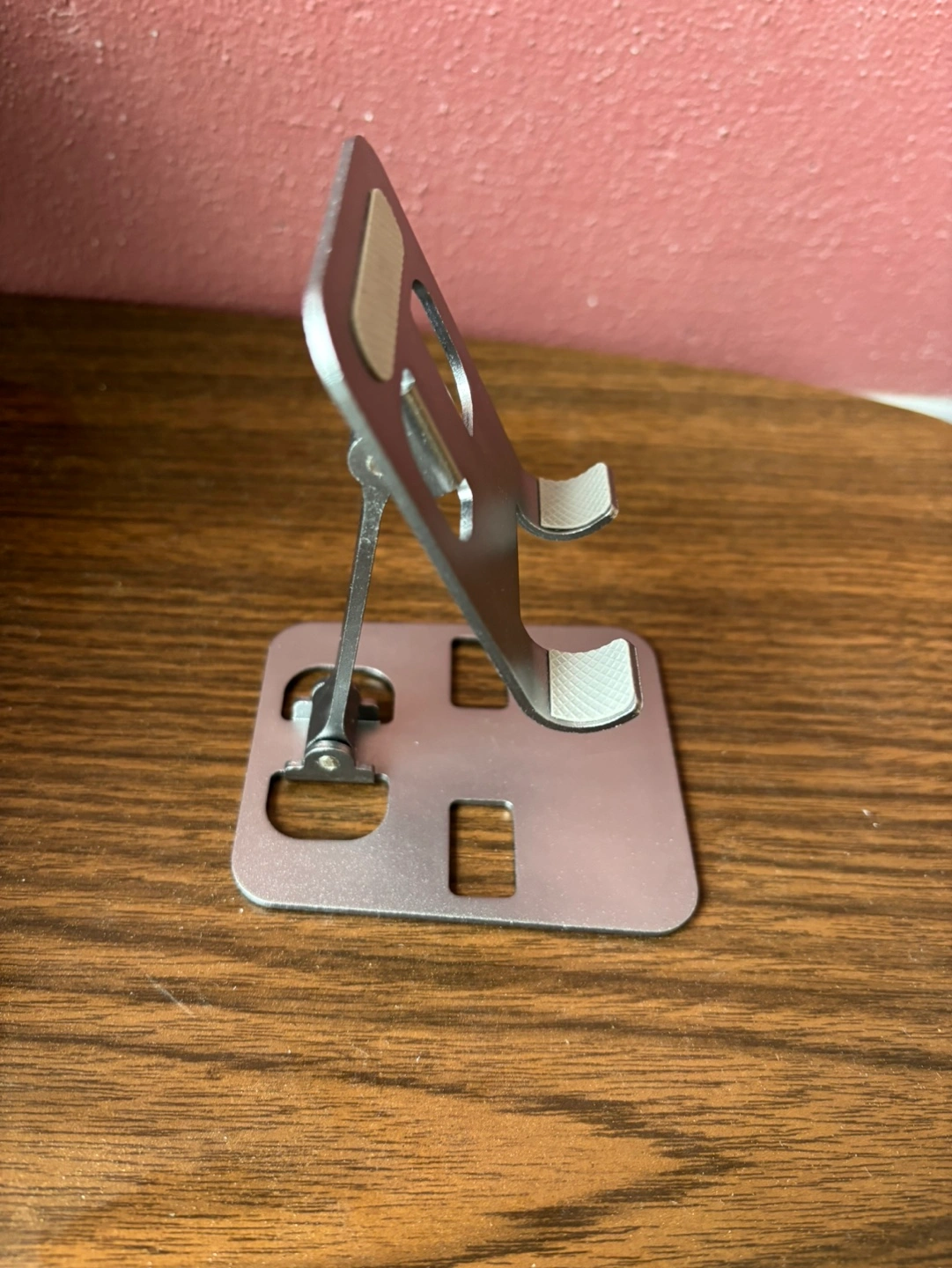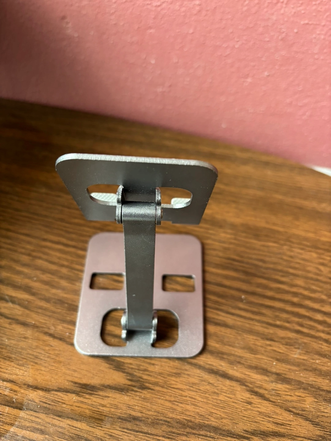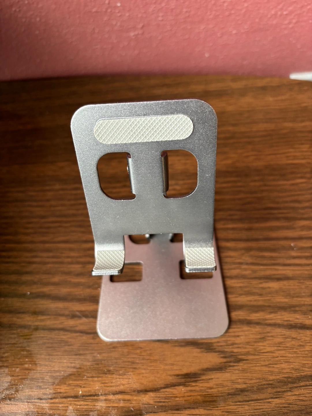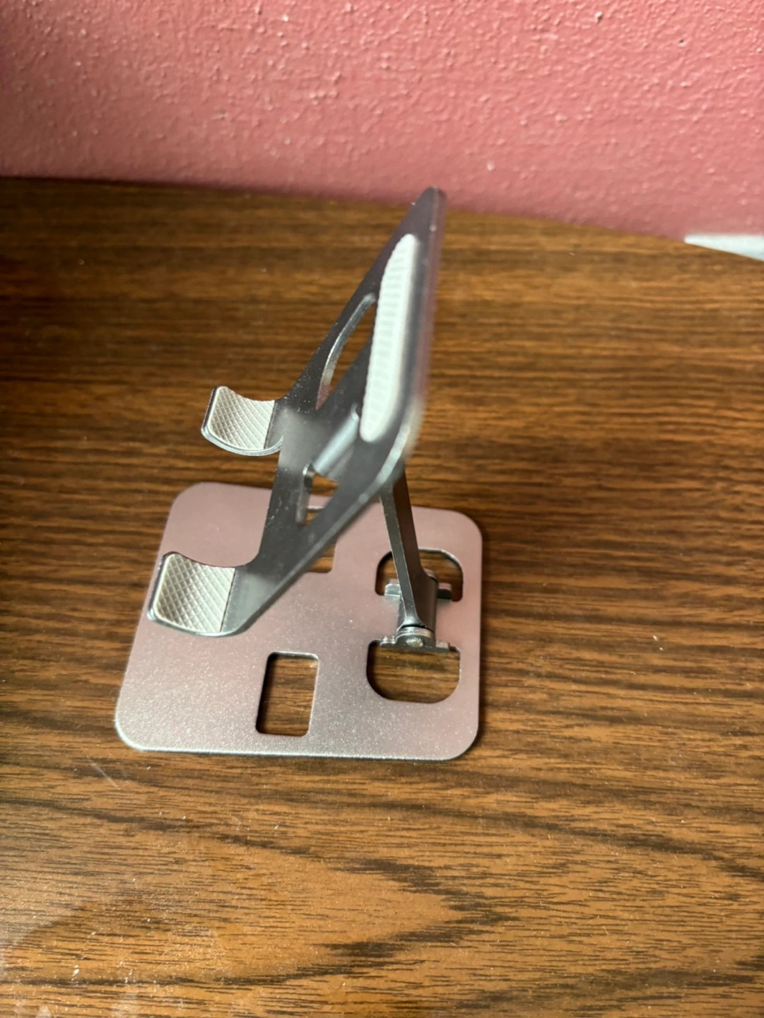Foldable metal phone stand. Grey in colour. Suitable for use with most smartphones. It’s in perfect condition like new Pick it up near Richmond Centre