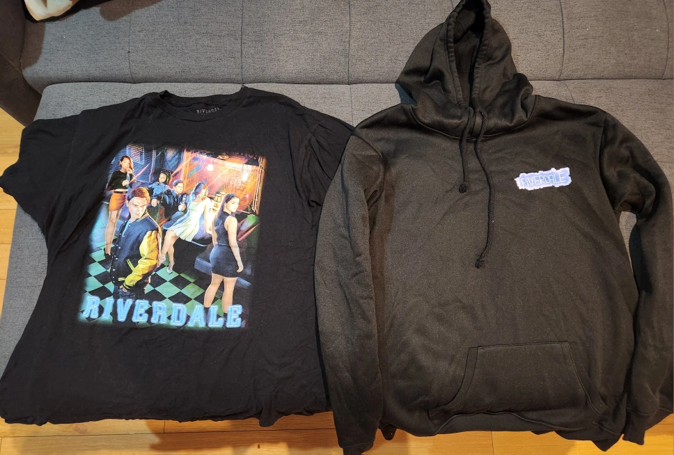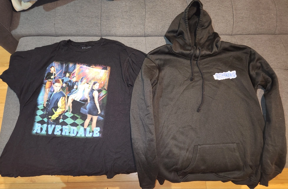 Unisex!! Large Black Riverdale t-shirt. Large black Riverdale hoodie. No rips etc. Used a few times so black is not faded at all. Coming from a smoke free/pet free home. $12 total for both. Pickup only. Cash only.