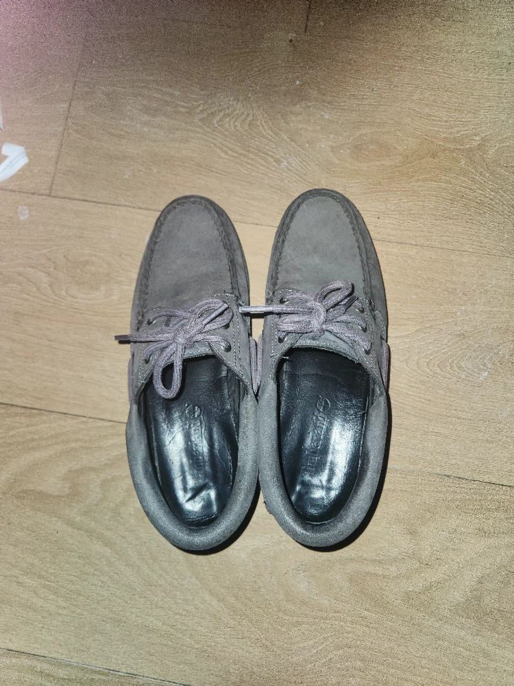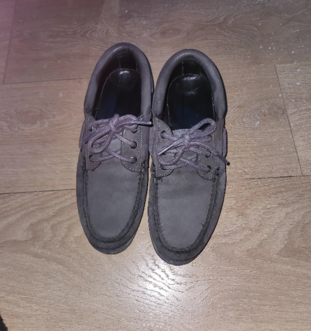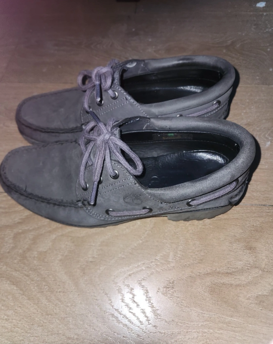 Grey Timberland 3-Eye Lug Handsewn Boat Shoe, with a moccasin. Built using traditional handsewn construction, with anti-fatigue footbeds and EVA midsoles for comfort. Features Anti-Fatigue Technology - PRO Premium Timberland® Leather Product Detail Upper made with Premium Timberland® Leather Traditional handsewn construction 360° functional rawhide lacing system Leather lining Anti-fatigue removable footbed EVA midsolee * Cash Only * * No E-transfers * * Pickup Only * * Serious Offers Only *