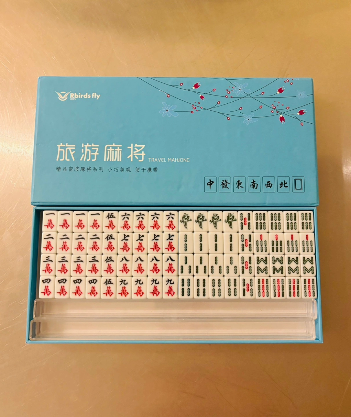 Mahjong set in a blue travel case. Includes tiles, dice, and instructions. Brand new, never used.🥰