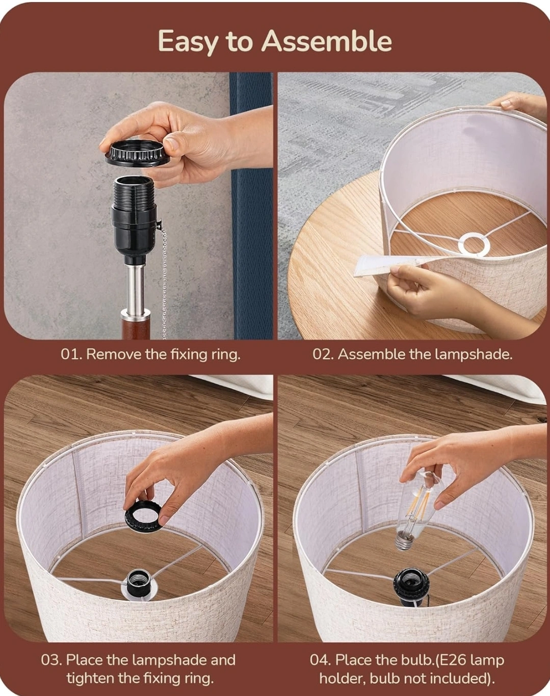 EDISHINE Mid Century Table Lamp, Solid Wood and Metal Bedside Lamp with Pull Chain Switch & Beige Linen Shade, Retro Nightstand Lamp for Bedroom Living Room End Table, E26 Base °•○•°•○•°•○•°•○•°•○•°•○•°•○•°○•°•○°•○°•○°•○•° 🌟 New in open box | ✨ Sale Price: $50 ✨️ 📍 Convenient Pickup Location: Scarborough Golf Club Rd & Lawrence Ave East 🚚 Local Delivery Available or Affordable Shipping via UPS / Canada Post* 🔍 Check Out My Other Listings for even more amazing deals! Thank you for your interest! 😊 °•○•°•○•°•○•°•○•°•○•°•○•°•○•°○•°•○°•○°•○°•○•° [Mid-Century Vintage Ambience] Elevate your living room or bedroom with a timeless mid-century design. The beige linen lampshade, paired with a dark solid wood pole, creates a retro charm, while the brushed nickel electroplated base adds a sleek, modern touch, seamlessly blending vintage and contemporary styles. [Effortless Pull Chain Control] Featuring a convenient pull chain switch, this table lamp allows you to turn it on or off with a simple pull—no more fumbling for switches. Enjoy enhanced convenience and ease of use for a more comfortable lighting experience. [Eye-Caring Beige Linen Shade] The soft glow from the beige linen lampshade creates a warm, inviting atmosphere while evenly diffusing light to reduce eye strain. Say goodbye to harsh glares and hello to soothing illumination. [Easy Assembly & Flexible Placement] Assemble the lamp quickly without needing special tools—simply attach the lampshade and insert an E26 bulb (not included). With a 65-inch power cord, you can easily position the lamp wherever it fits best. [Compact & Sturdy Design] The durable, space-saving metal base is designed for stability, preventing tipping and making it ideal for small spaces like nightstands or side tables. Its delicate round base ensures it complements your decor without taking up too much room.