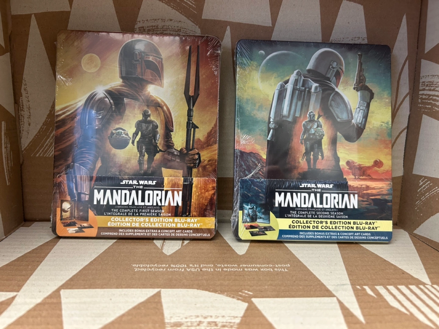 Collector's edition Blu-ray of The Mandalorian seasons 1 and 2. Includes bonus extras and concept art cards. Factory sealed Steel Book. $50 each or buy two together for $80.