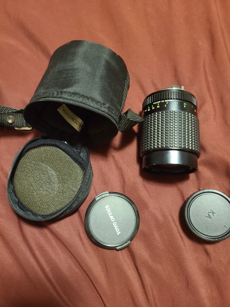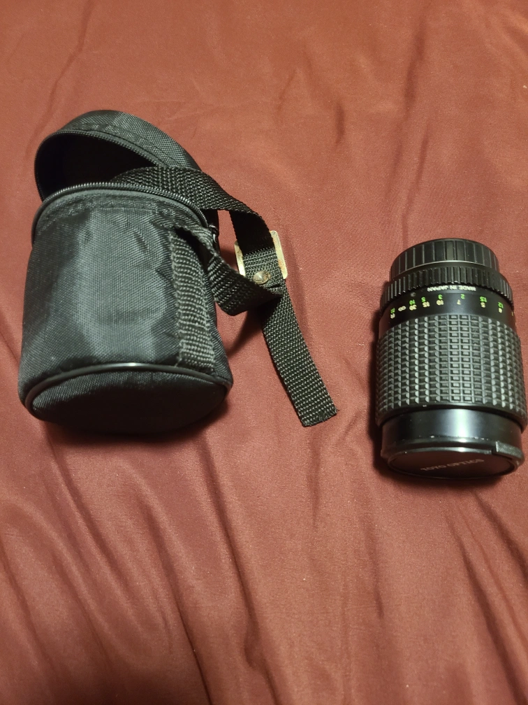 Used lens in good condition. Comes with a carrying case and both caps. Made in Japan. Can be used on Pentax camera.