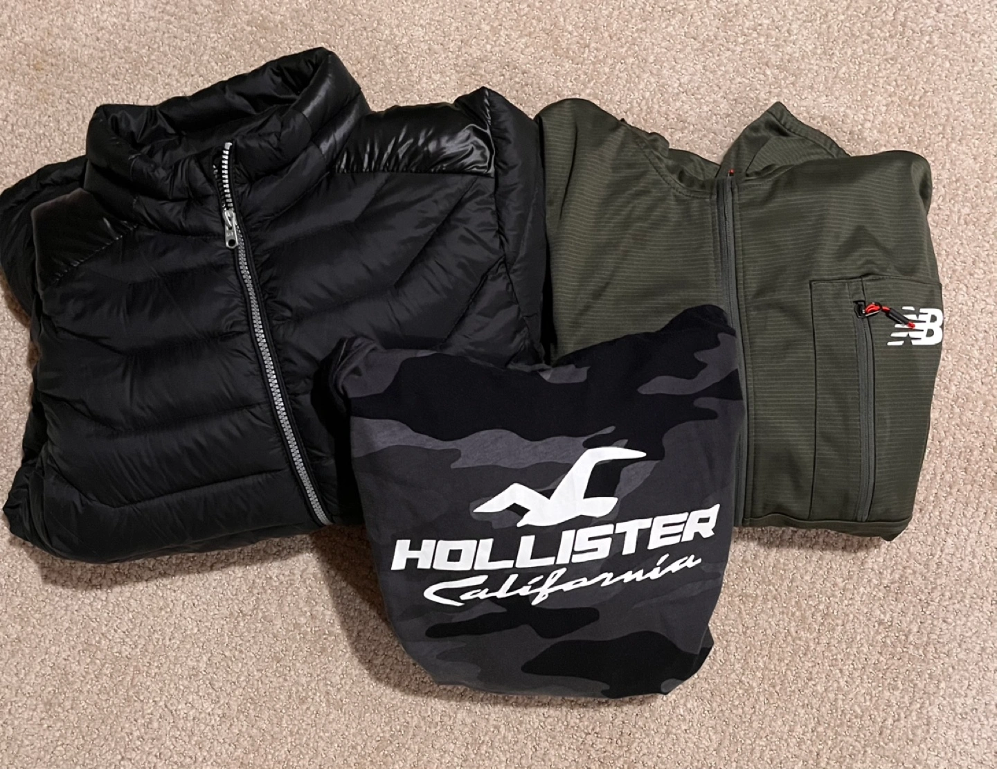 $15 each All three sizes are XL Has been used a bit good condition no tears or damage Feel free to ask questions 2 for $25 ALL for $40 Brands Black jacket: Abercrombie & Fitch Camo hoodie: Hollister California Green Jacket: New Balance