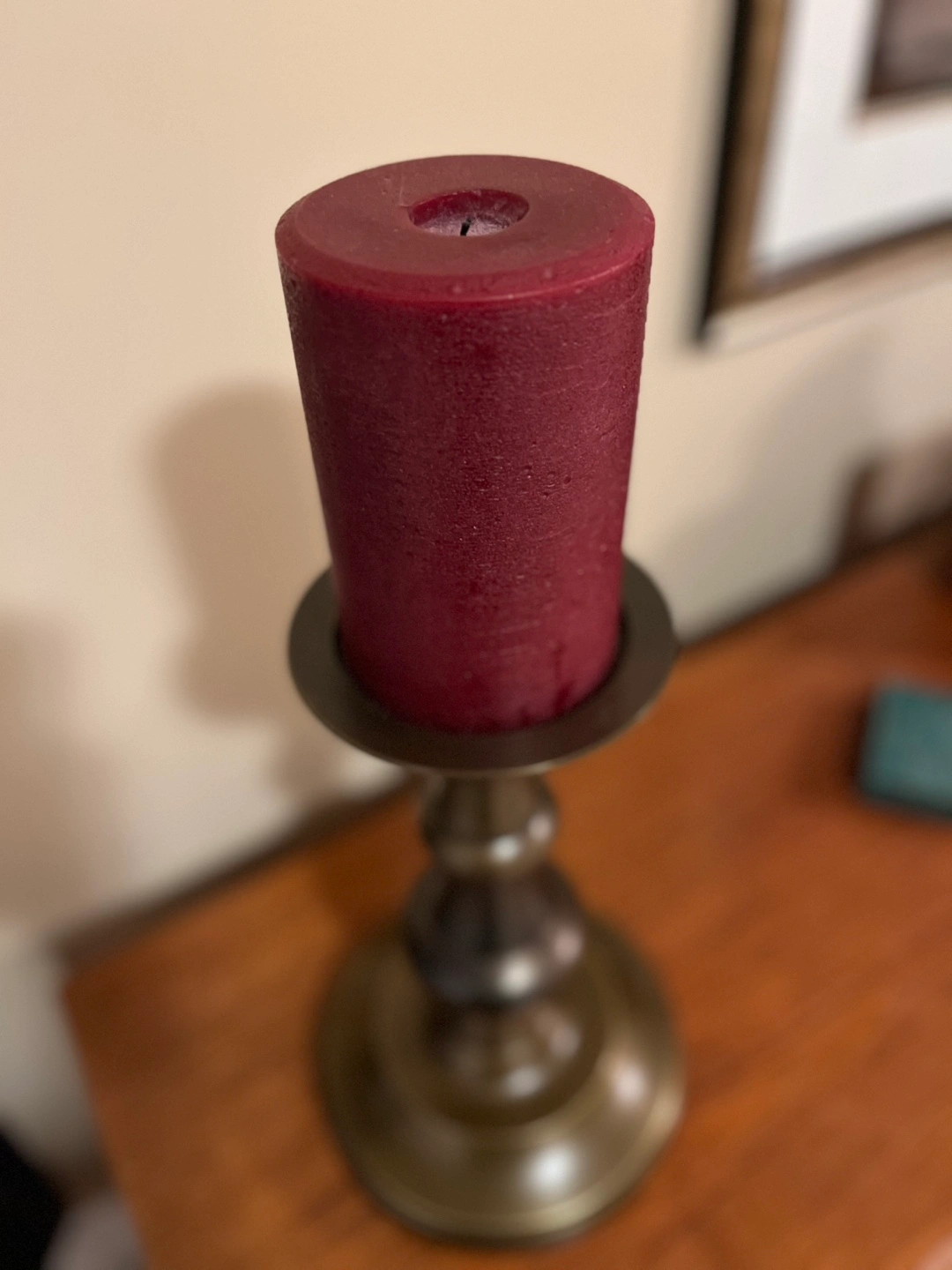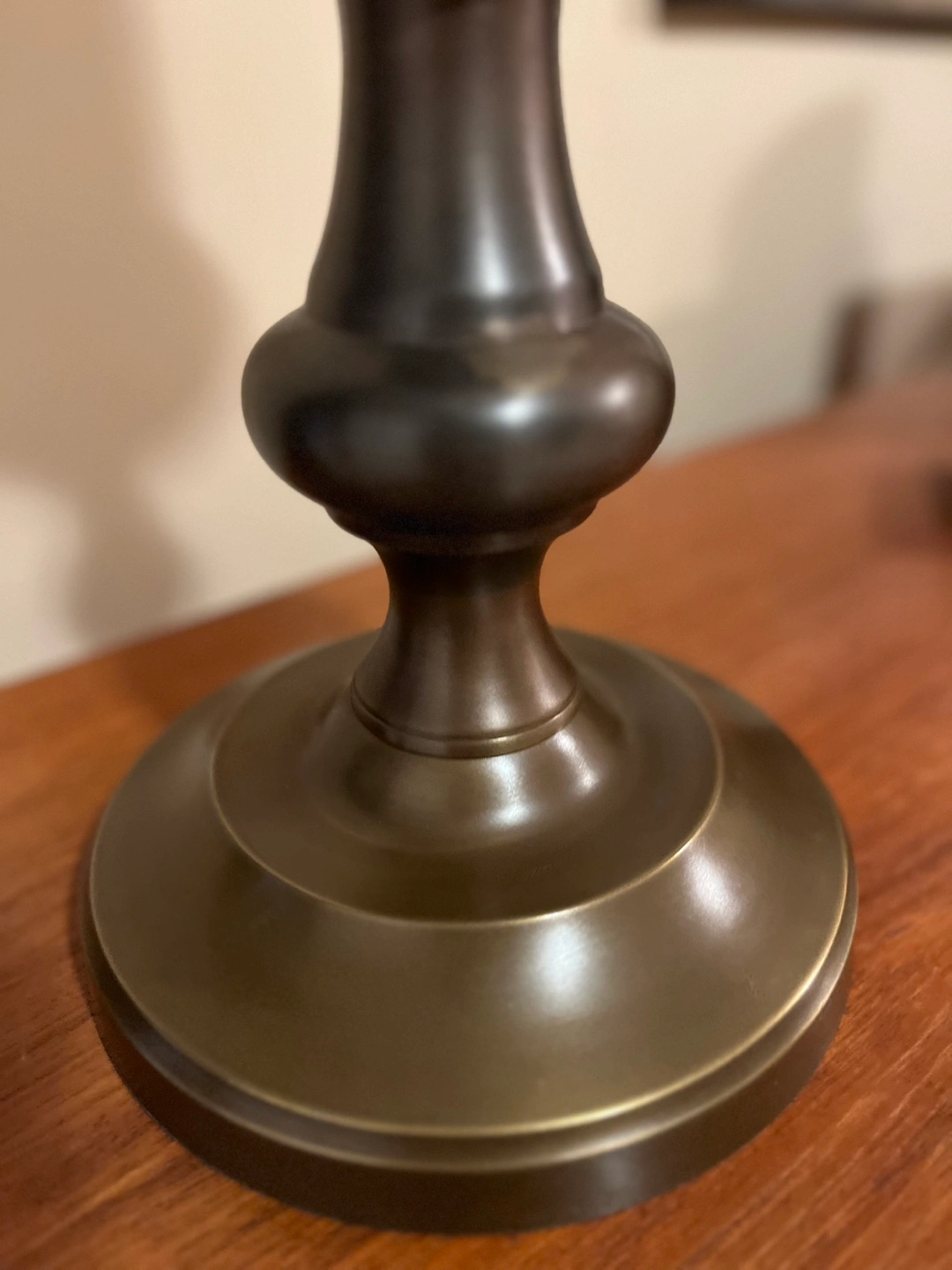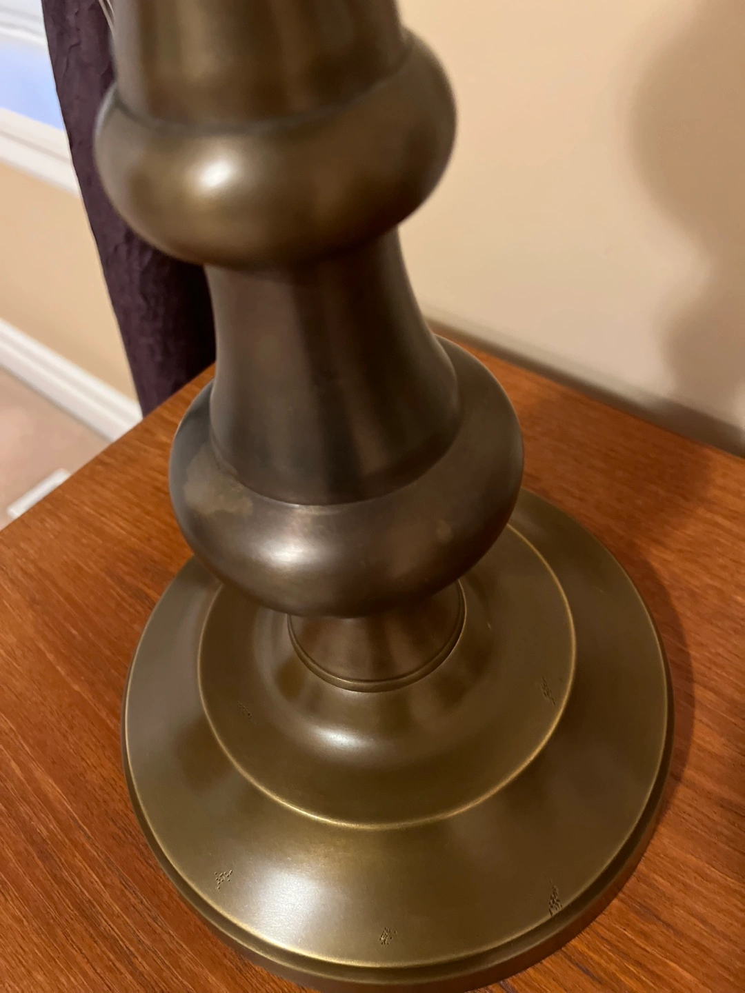 Brass Restoration Hardware 14” tall candle holder with a wide base and a round, smooth top. This candle holder is new. Price includes new pillar candle! No Dents or Scratches. Pick-up East York (Laird/Eglinton). Cash please.