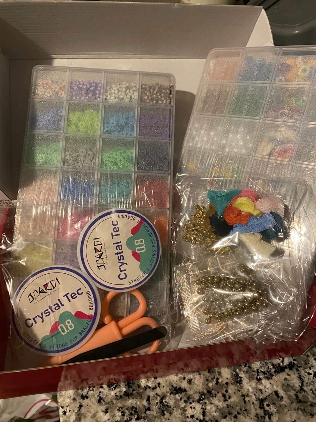 Jewelry making kit, includes beads, string, and other supplies. New, unopened.