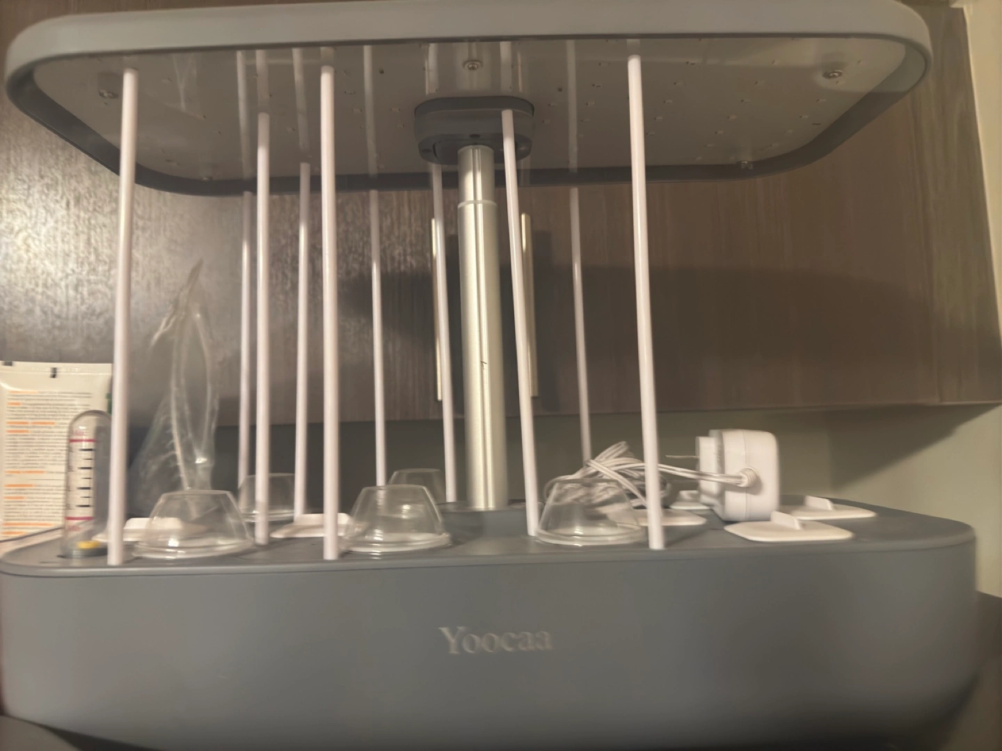 Starter Kit Included. Only used for one growing cycle. I don’t have a home for them. Everything that came with the starter kit will be included including a little bit of food and pods. I also have a lot of different seeds of plants and vegetable or fruits I can add as well. Full Spectrum Lighting with Adjustable Modes: Our kitchen garden system mimics natural sunlight with red, blue, and white light to enhance plant growth;Switch between modes for veggies or flowers;Perfect for any interior garden to maximize yields Automatic Timer & Pump Function: The Yoocaa 12 hydroponics growing system features a 16-hour on, 8-hour off light timer and a water pump with a 30-minute on/off cycle;This ensures your indoor herb garden receives ideal lighting and water circulation with minimal effort for optimal growth Adjustable Light Height: This indoor hydroponic growing system has an adjustable light pole to keep the perfect distance as plants grow;Prevents burning or lack of light, ensuring healthy growth in any indoor growing system Low Noise Design: This indoor garden hydroponic growing system runs quietly, ideal for home use;Enjoy a peaceful environment while your hydroponic system promotes healthy plant growth Grow Fresh, Healthy Food: Our hydroponic growing system lets you grow fresh, pesticide-free vegetables and herbs at home;This herb garden ensures safe, healthy ingredients for your meals, perfect for families with children