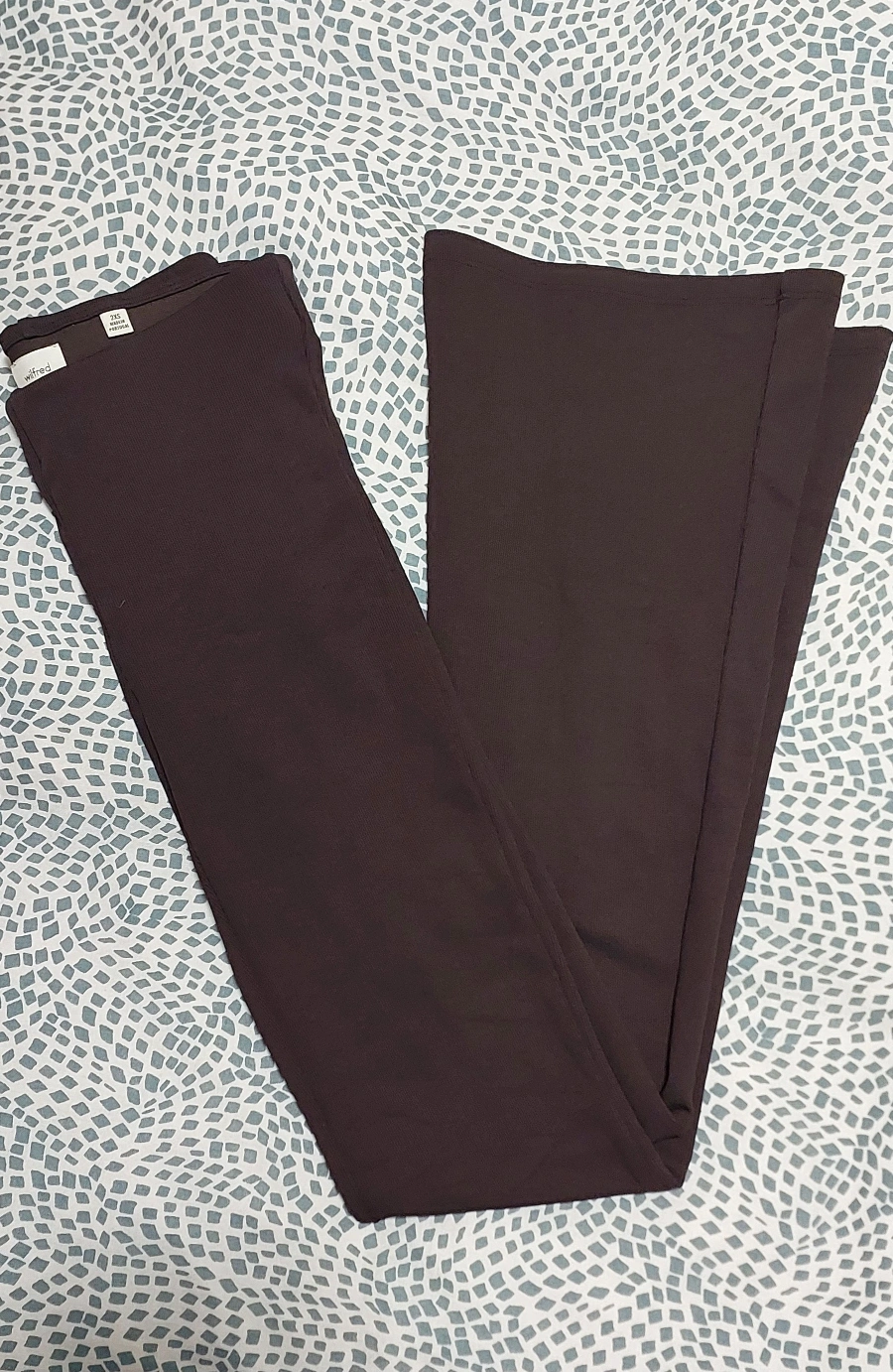 Dark brown ribbed flare pants. Size 2XS. Worn once, excellent condition.
