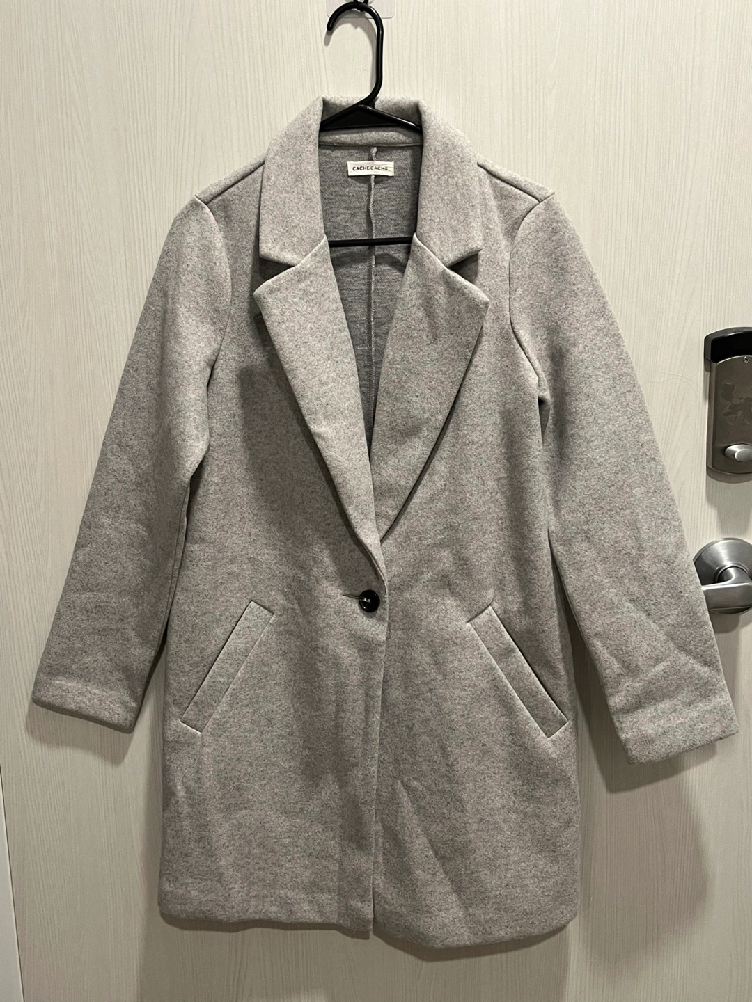Long-sleeved grey blazer with pockets. Single-button closure. Completely new just need a a good dry clean to remove the creases, it was in storage for a while. Pickup in York University subway station or Burger King @ York University
