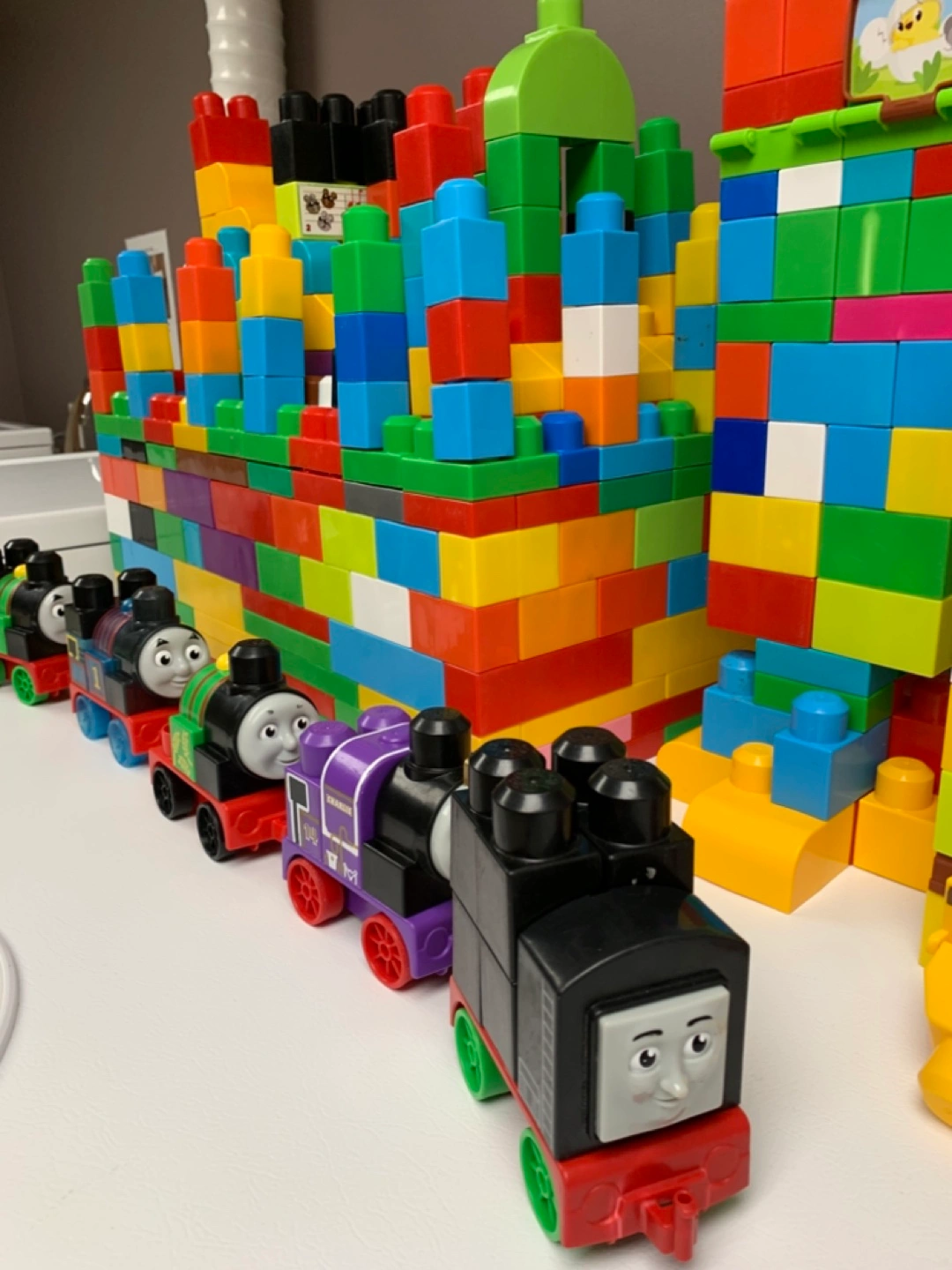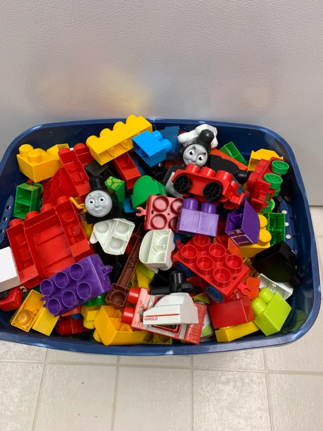 Large set of Thomas & Friends building blocks. Includes Thomas & Friends characters, vehicles and farm animals. Lots of blocks to build anything you can imagine. A big bin filled with over 450 Mega blocks. Easy to build and hours of fun for little ones to play with, perfect for little hands and Thomas fans!