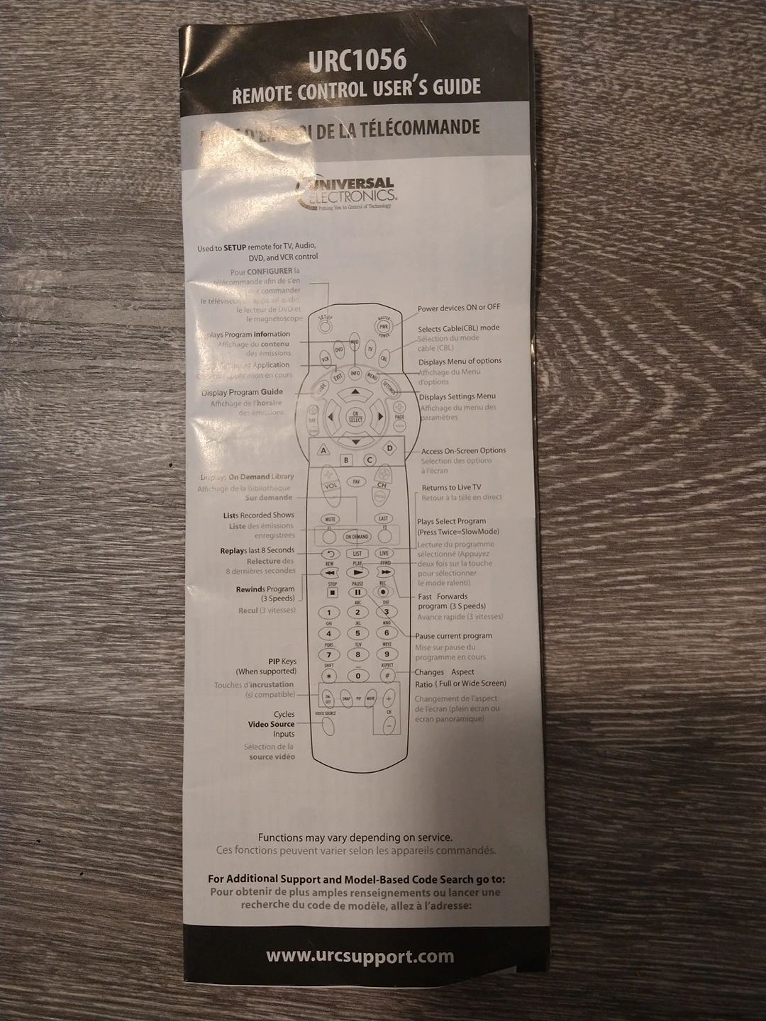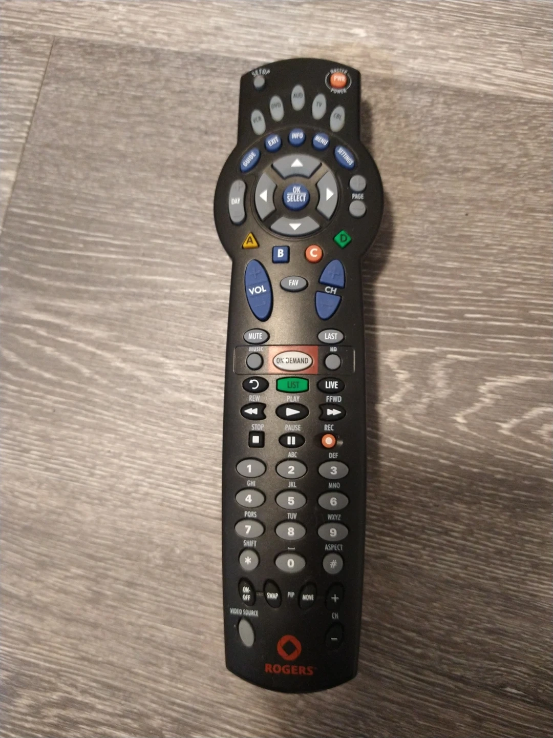 Universal Rogers TV Remote and instruction manual Can be configured to work with any TV, DVD and other devices. It is actually brand new, I just opened it and it has 2 new AA batteries inside.