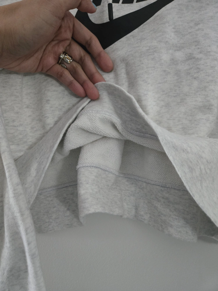 Grey cropped hoodie with a black Nike swoosh logo. Size Large. color : light gray Very good condition. No stains, rips, pulls, holes. Cuffs and hems are clean. Location Barrhaven area close to Home Depot Cash on pickup Pls see other listings.
