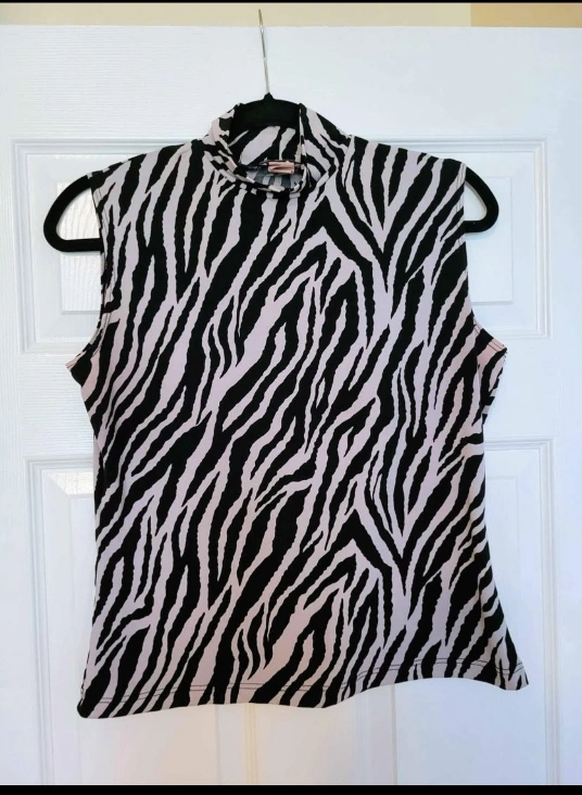 Two sleeveless tops. One black, one zebra print. Both size M.