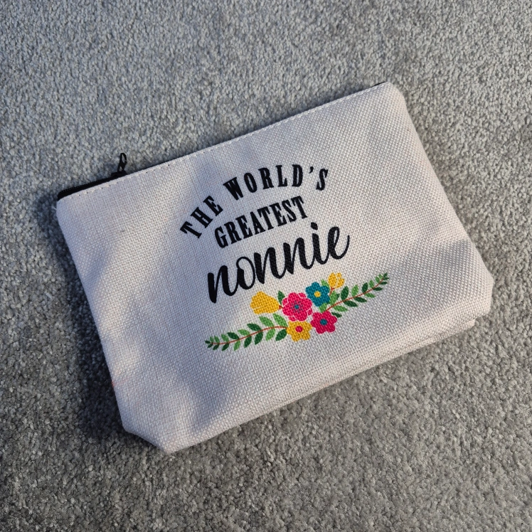 Small makeup bag with a zipper closure, featuring the words "The World's Greatest Nonnie" with flowers. New Nerver used Cash Only Meetup in Barrhaven Marketplace - Walmart