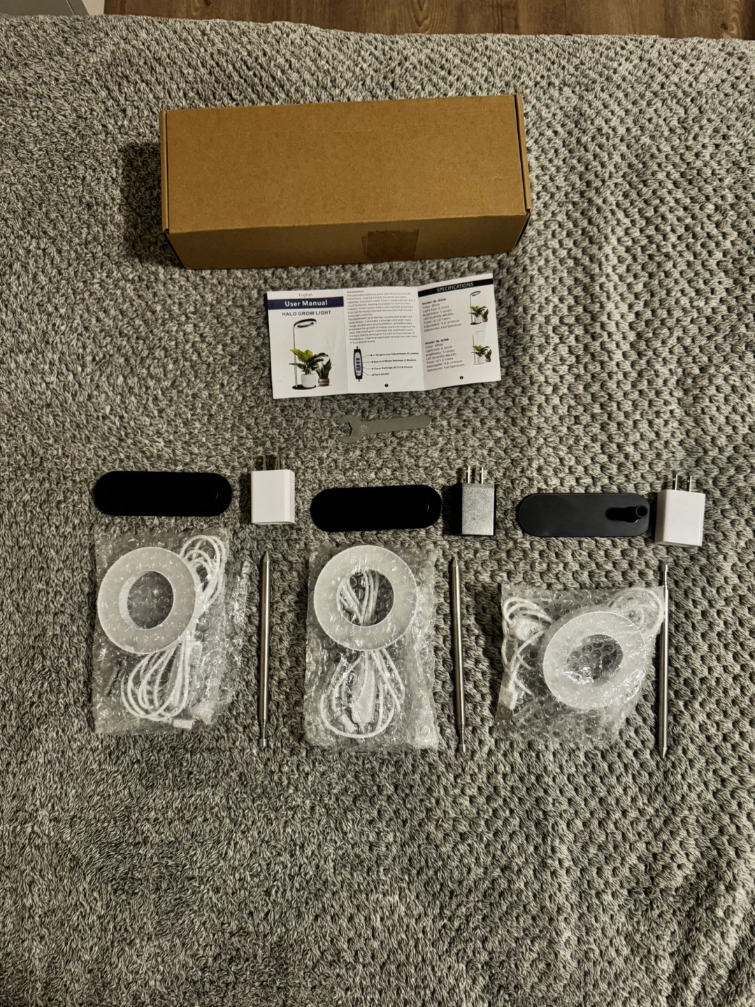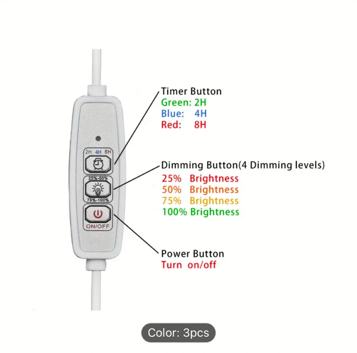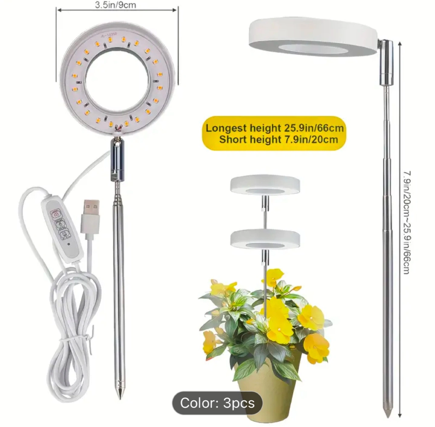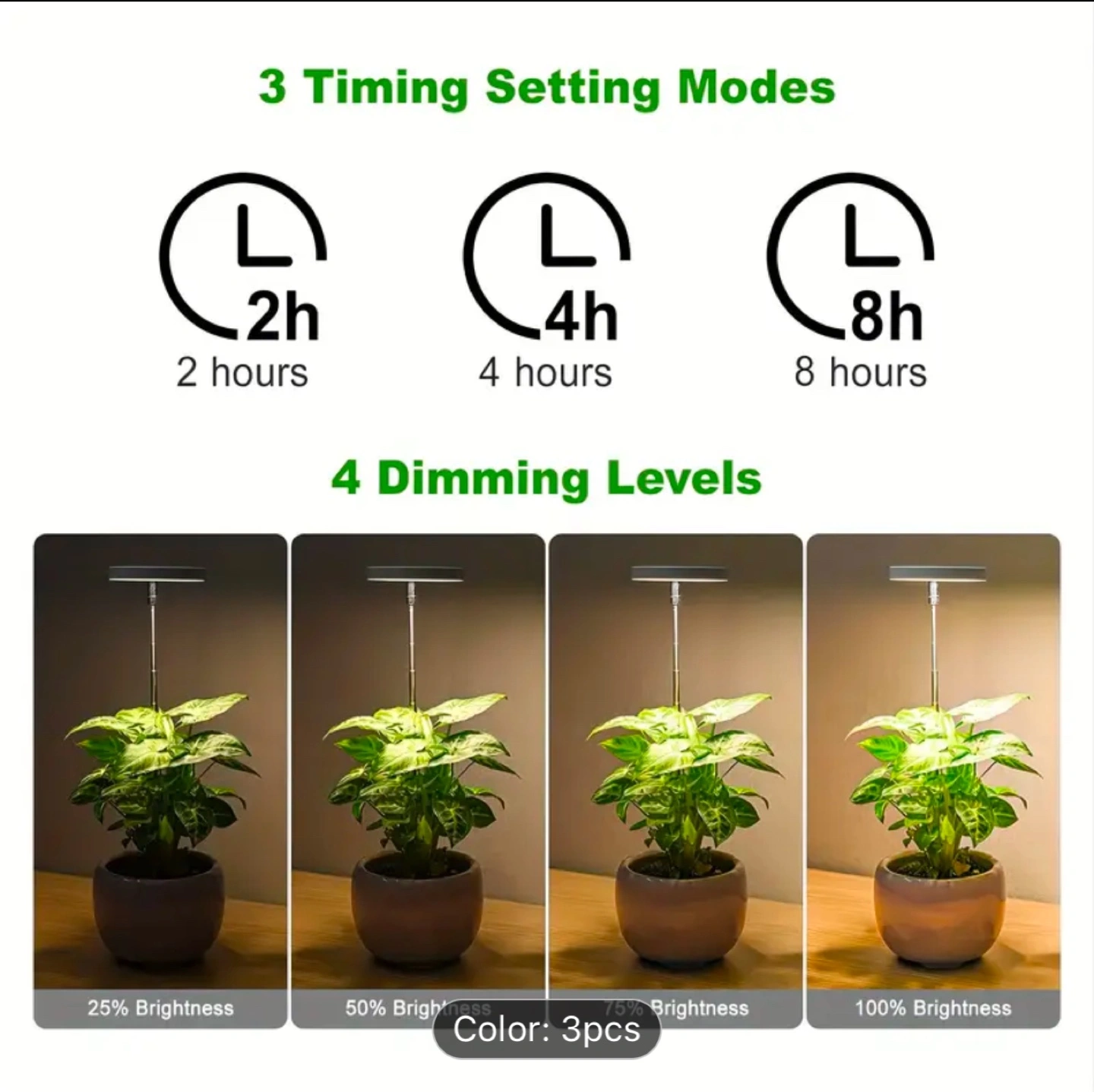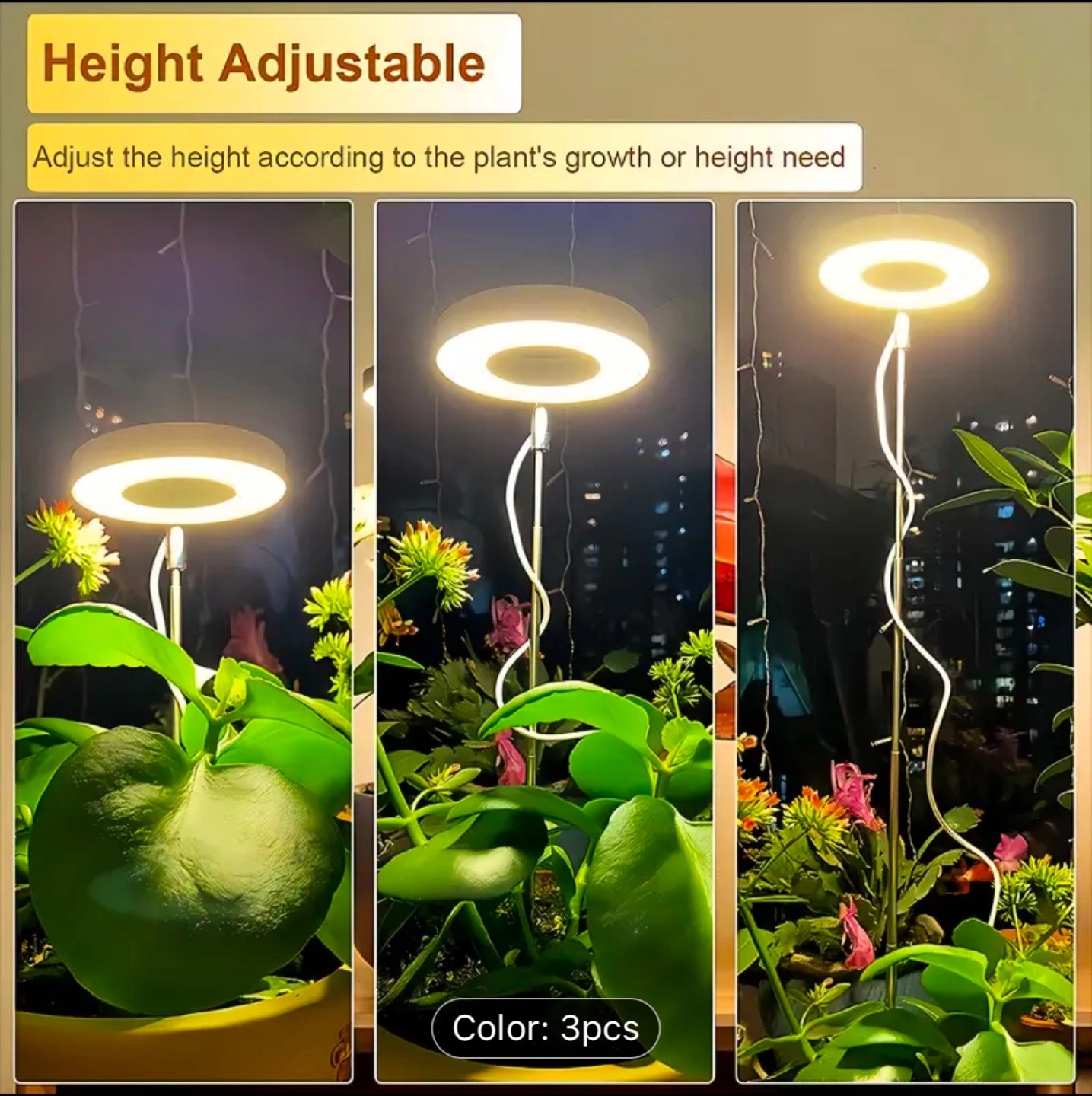 Halo Grow Light Set: 3-Head Full Spectrum LED Plant Lights with Adjustable Height and Timer Functions 3-Pack Halo Grow Light Set – Full-Spectrum LED for Indoor Plants Includes: • 3 LED grow lights (full-spectrum). • Adjustable rods (9.8–37.4 inches). • 3 black bases. • 2 white & 1 black power adapters. • Assembly wrench & user manual. Mimics natural sunlight to support healthy plant growth during all stages. • Energy-efficient and easy to use. • Compact design for home or office use. • Ideal for sprouting, growing, and harvesting. Perfect for indoor plants, compact and energy-efficient. Message me for more details or pickup options!