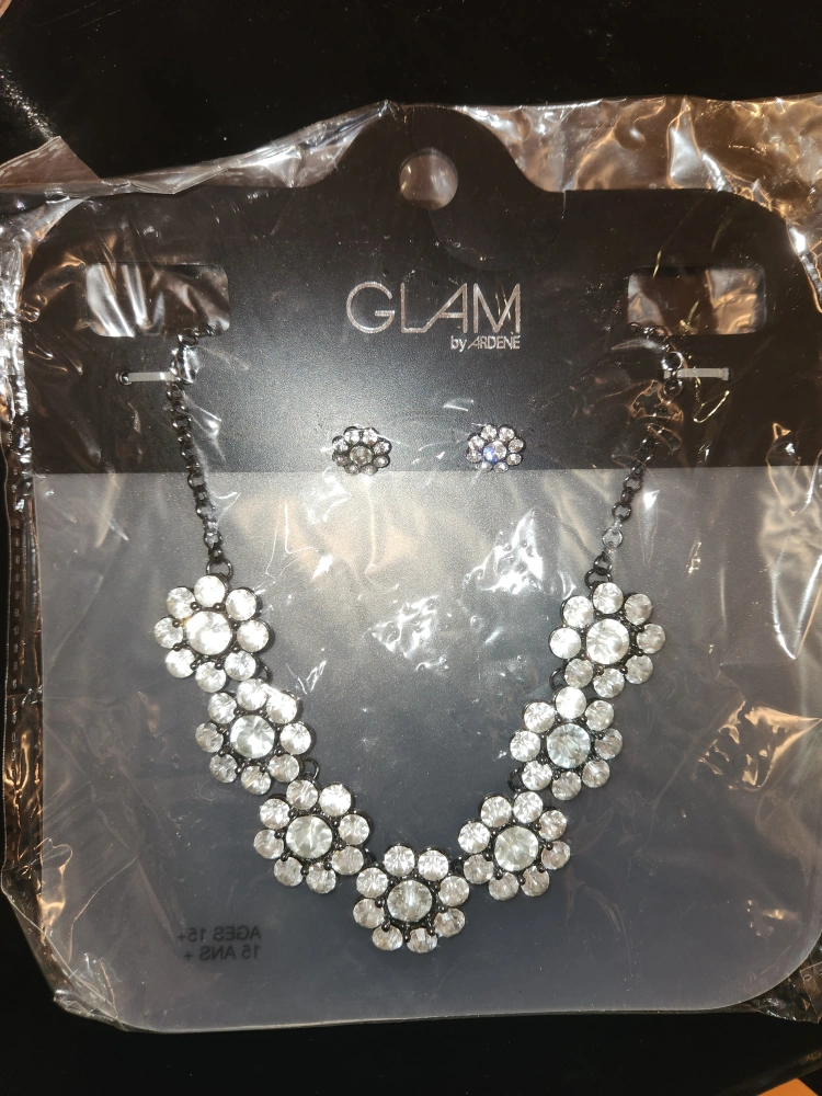 BRAND NEW!!! Necklace and earring set. Silver chain and rhinestones. New, never worn. Comes in original packaging. $10 Cash only. Pickup only.