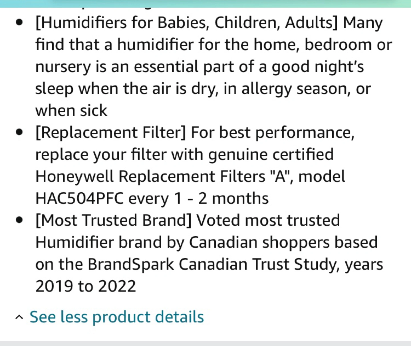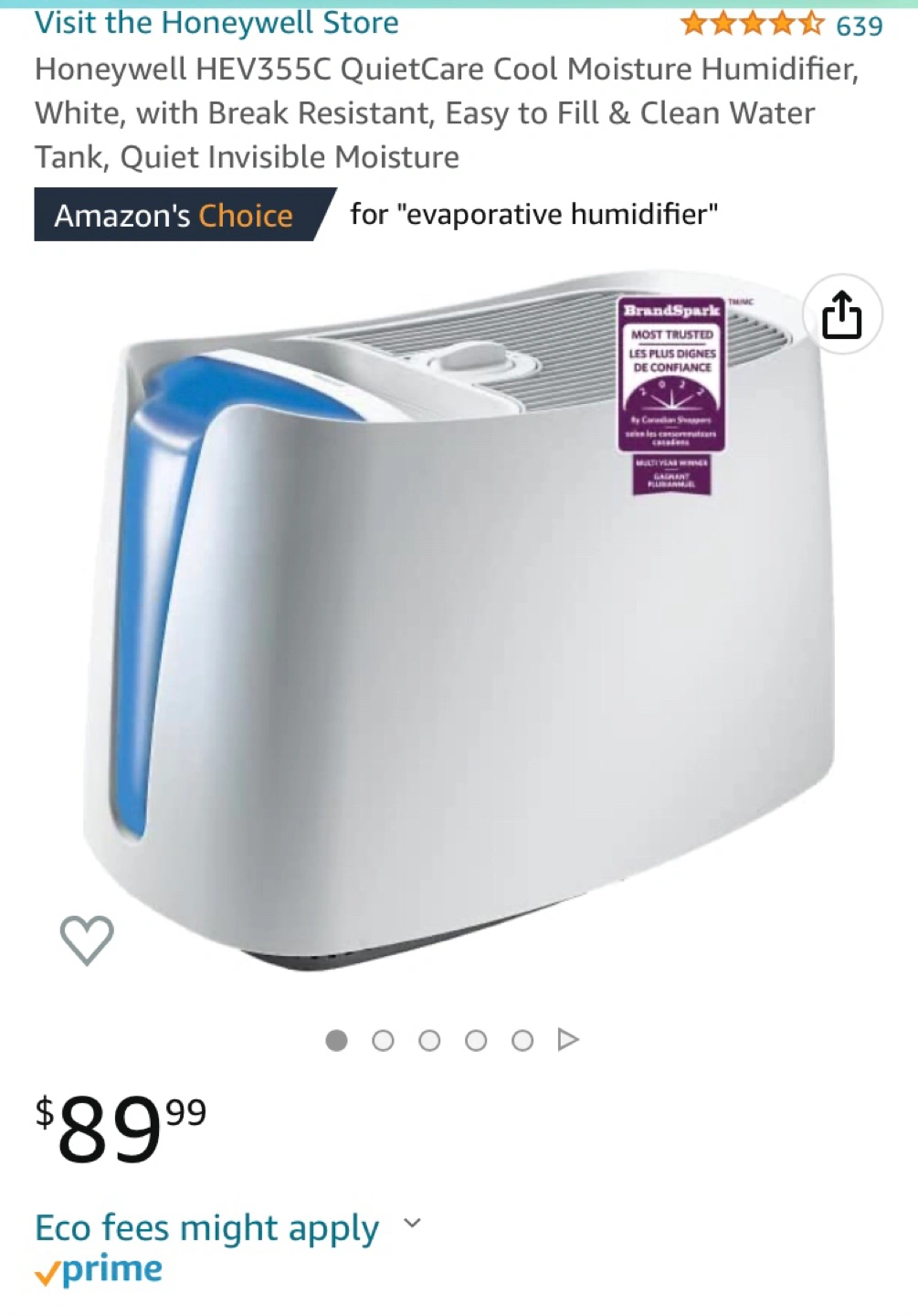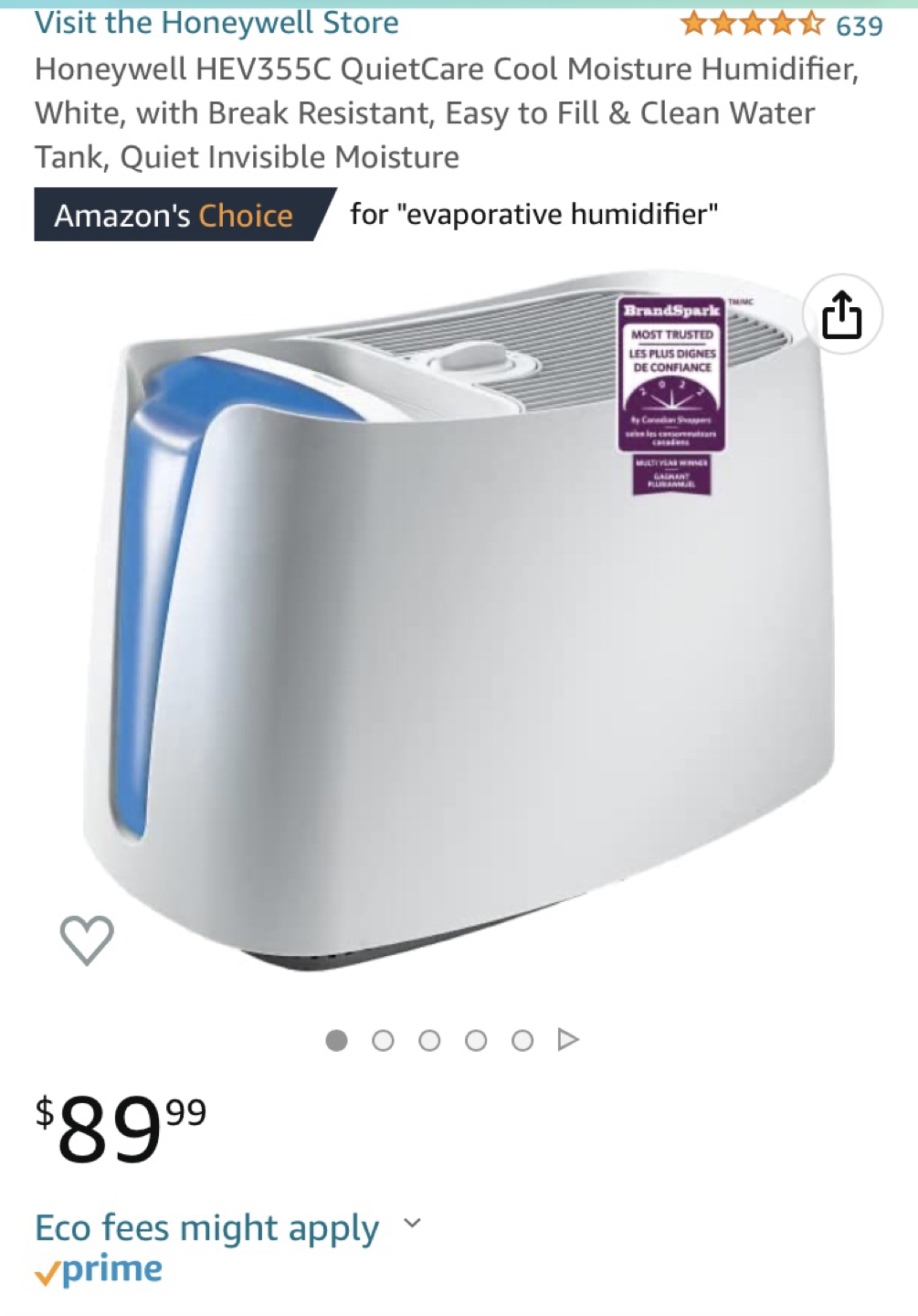 Honeywell Cool Moisture Humidifier Used humidifier in good condition with unused wicking filter. See photos for item description. Pet and smoke-free home. $25 Price is firm Pick-up at Spadina x College.