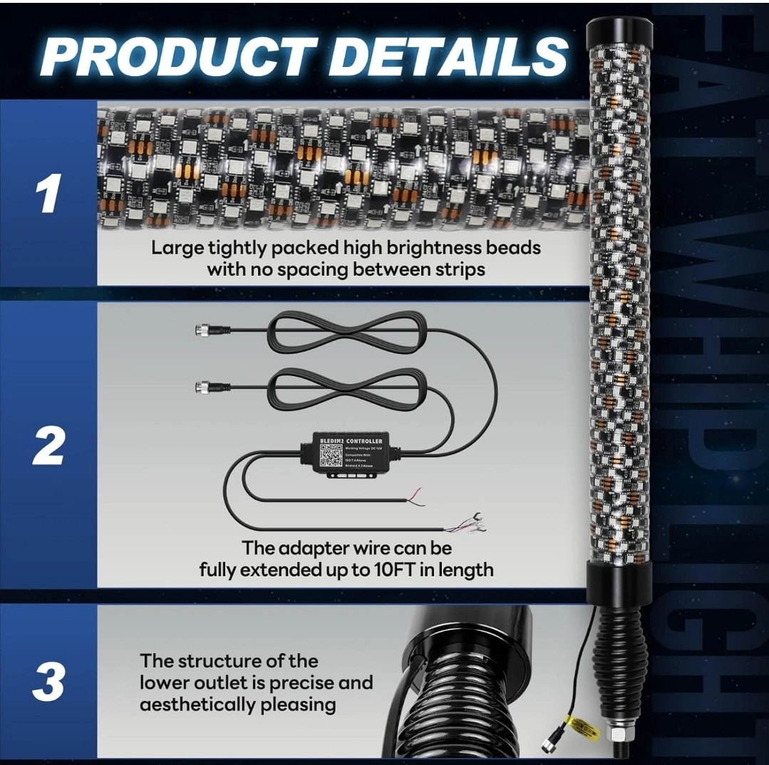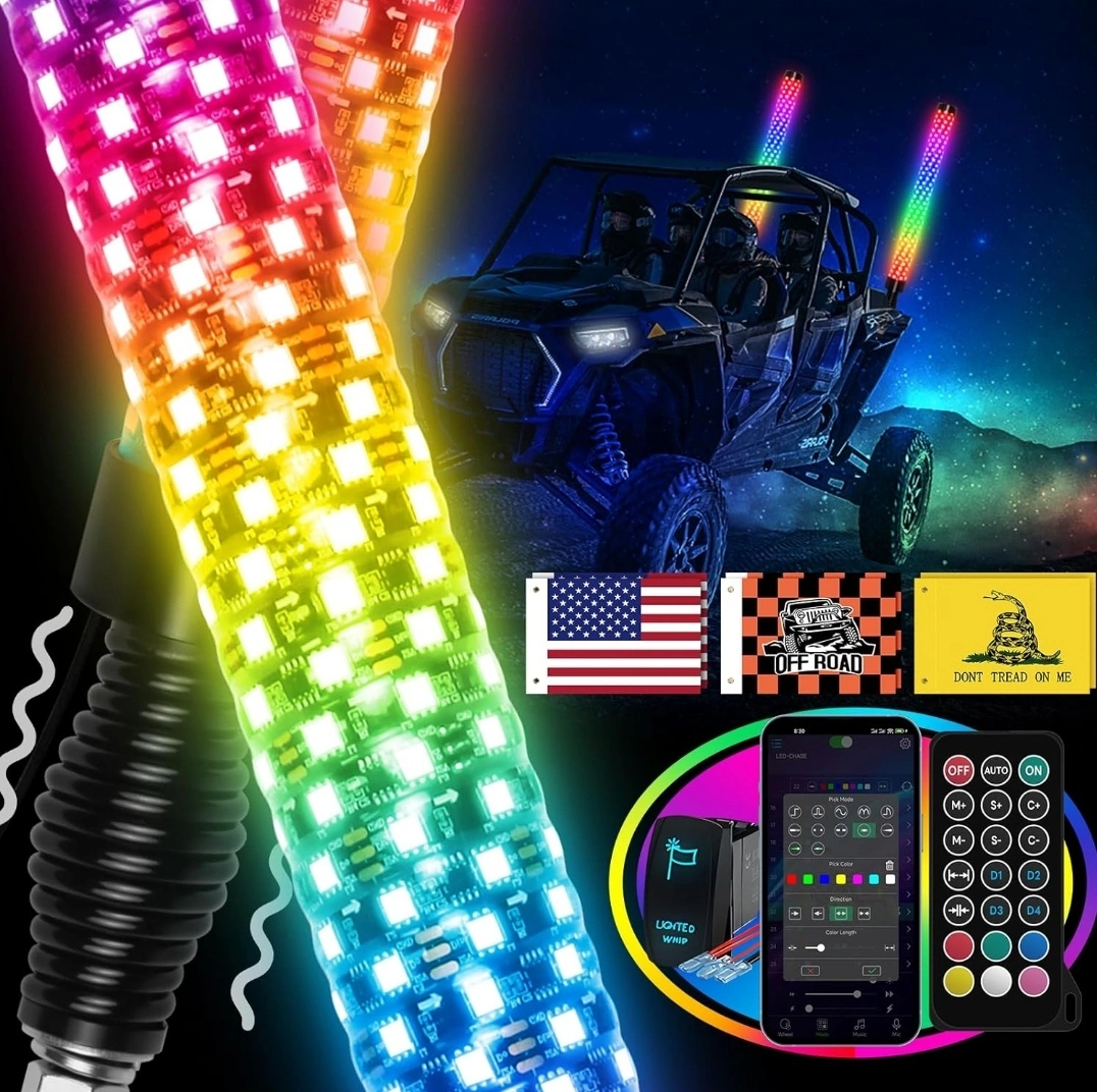 2PCS 3FT Fat Whip Lights with Spring Base, Thick LED Whip Lights with App & Remote Control,Spiral RGB Chasing Lighted Antenna Whips with Rocker Switch,Music Whip Light for UTV ATV Can-Am Truck °•○•°•○•°•○•°•○•°•○•°•○•°•○•°○•°•○°•○°•○ ✨ | 𝐏𝐫𝐢𝐜𝐞: $200 ✨ - / Retails 299+ 🌟 𝐂𝐨𝐧𝐝𝐢𝐭𝐢𝐨𝐧: New 📍 𝐂𝐨𝐧𝐯𝐞𝐧𝐢𝐞𝐧𝐭 𝐏𝐢𝐜𝐤-𝐔𝐩 𝐋𝐨𝐜𝐚𝐭𝐢𝐨𝐧: Scarborough Golf Club Road & Lawrence Ave East 🚚 𝐃𝐞𝐥𝐢𝐯𝐞𝐫𝐲 𝐎𝐩𝐭𝐢𝐨𝐧𝐬: Local delivery or Affordable low rate shipping with Canada Post / UPS 🔎 𝐃𝐨𝐧'𝐭 𝐌𝐢𝐬𝐬 𝐎𝐮𝐭! Check out my other listings for more great deals! 𝐓𝐡𝐚𝐧𝐤 𝐲𝐨𝐮 𝐟𝐨𝐫 𝐲𝐨𝐮𝐫 𝐢𝐧𝐭𝐞𝐫𝐞𝐬𝐭! °•○•°•○•°•○•°•○•°•○•°•○•°•○•°○•°•○°•○°•○ 🔥 Elesovu 2" Fat LED Whip Lights – Unmatched Brightness & Durability 🔥 🚀 Ultimate Brightness & Strength: Our 2" diameter Fat Whip Lights are 600% brighter than standard whips, featuring high-intensity LED beads for unmatched illumination. 🌟 Day or night, stand out with vibrant, stable lighting that won’t crack or fade over time. 💪 Reinforced Spring Base: Tackle the toughest terrains with confidence! The heavy-duty spring base absorbs shocks and prevents breakage, offering maximum flexibility during off-road adventures. 🏞️ 🎶 Dynamic Dual Control: Customize your lights with the app & remote control – adjust colors, motion speed, direction, and brightness. 🎵 Sync to music and let your whip lights dance to every beat! 🛡️ Enhanced Safety & Durability: Featuring turn signals, brake lights, and reverse lights, these whips boost your vehicle's safety. Built with aluminum alloy for durability, they’re IP68 waterproof, sandproof, and shockproof – ready for any challenge. 🌊 🔋 Smart Power & Bonus Flags: The included rocker switch protects your battery, ensuring easy operation right from your cab. Plus, 6 unique off-road flags let you ride with style and pride! 🏁 👉 Upgrade Your Ride with Elesovu – Where Performance Meets Style! 👈