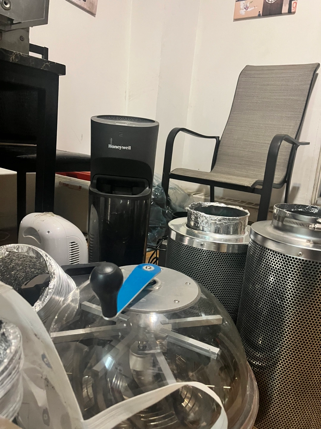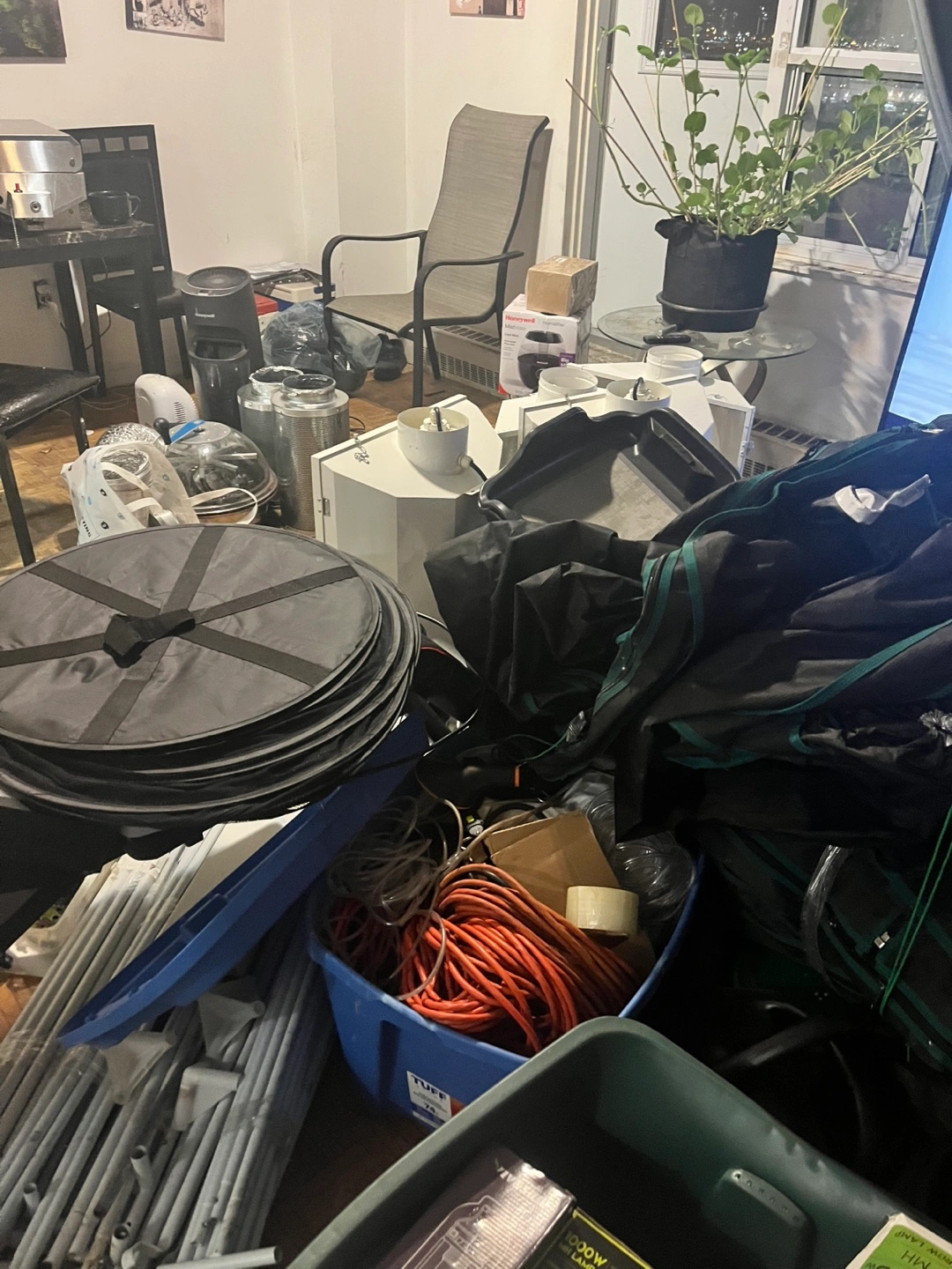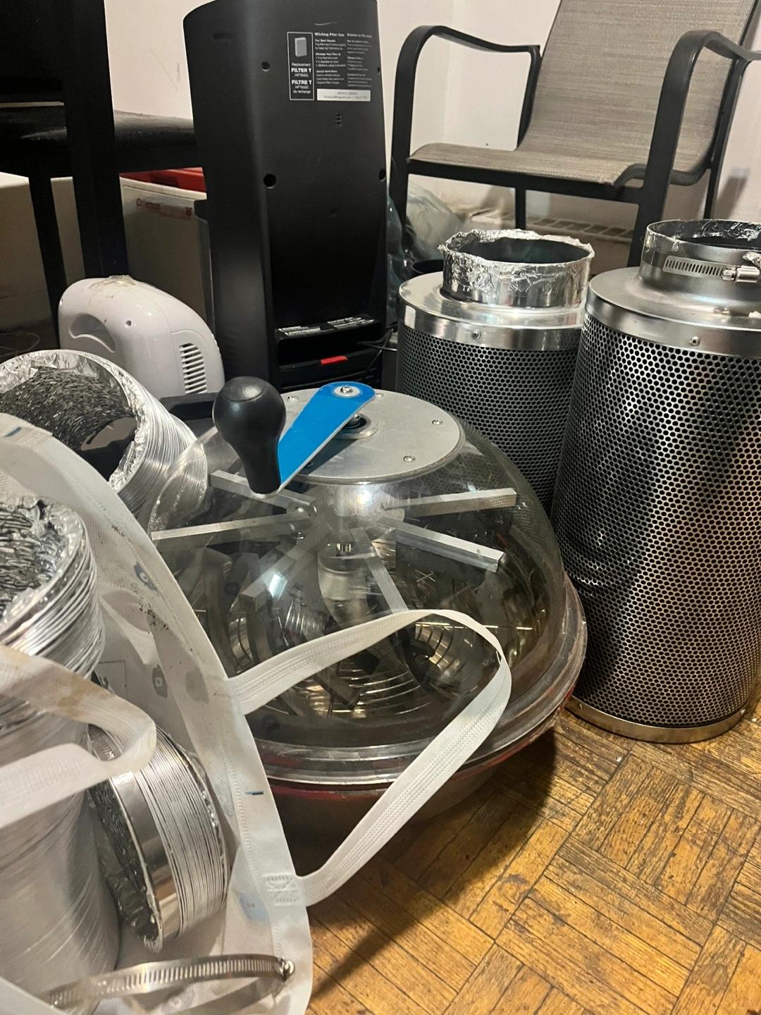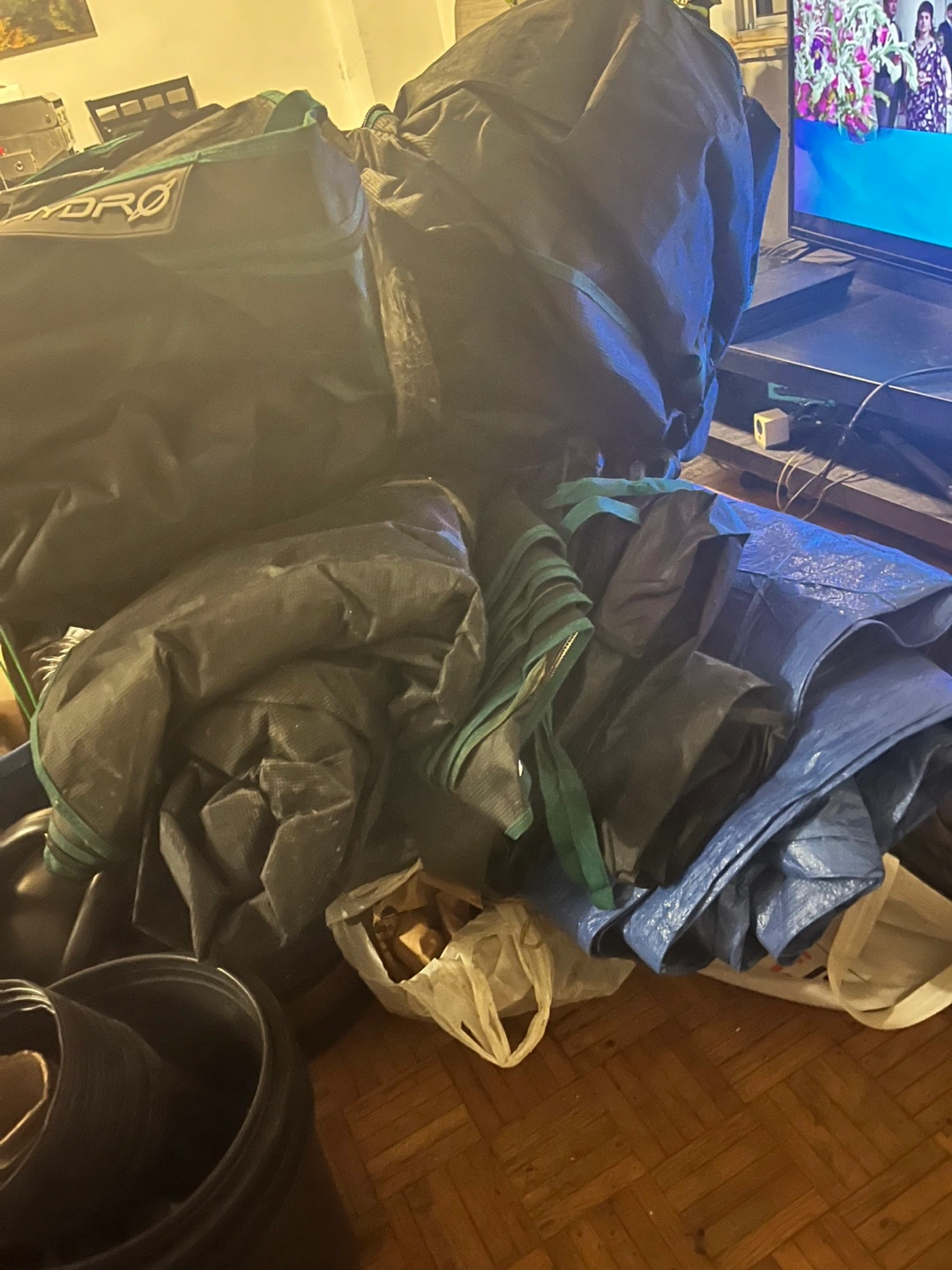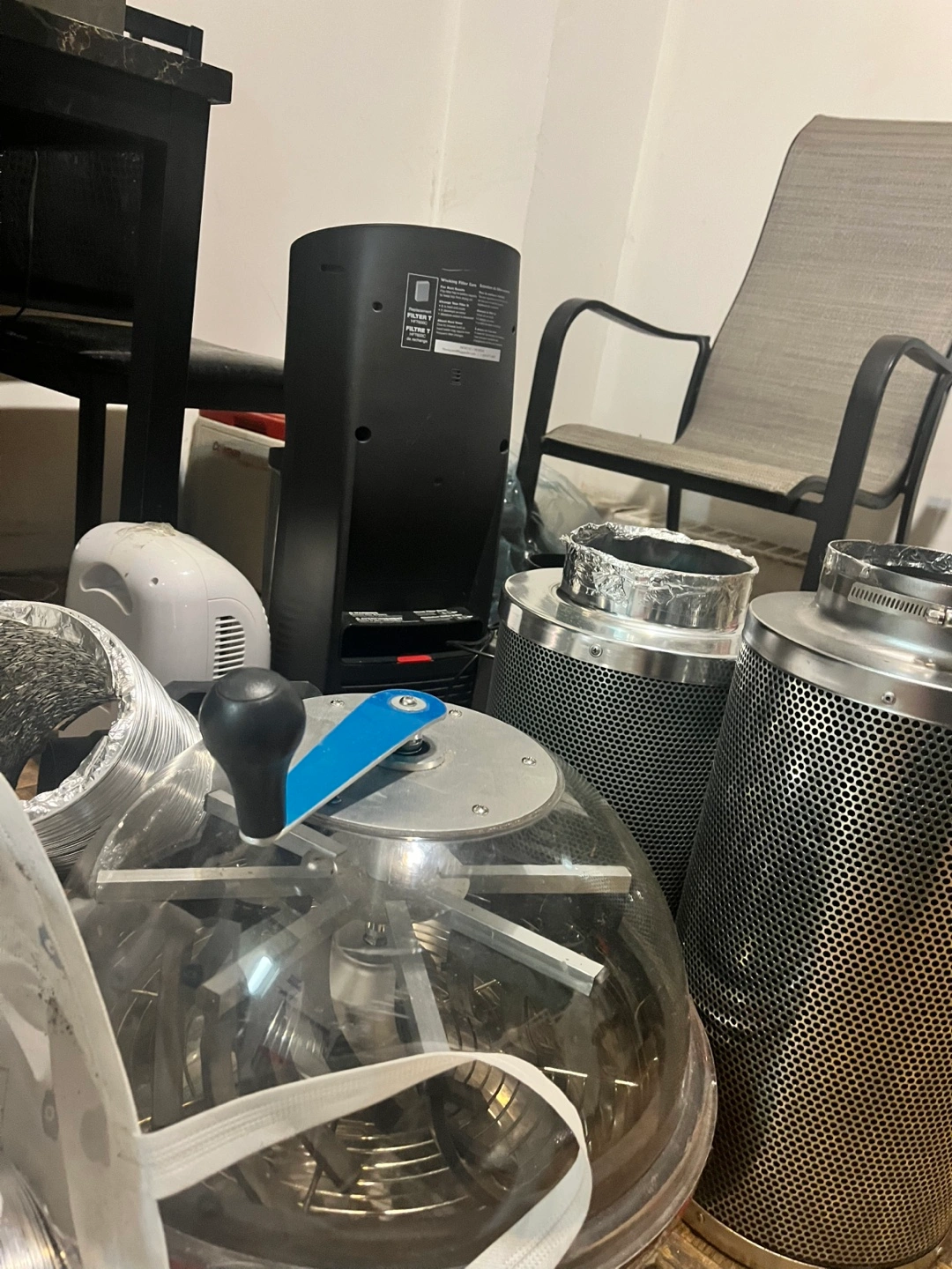 Large bundle of hydroponics equipment. Includes grow tent, filters, tubing, and other accessories. Some items are new! Great for starting or expanding your hydroponic setup.