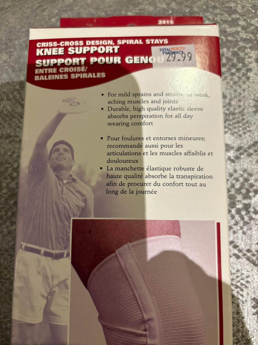 Knee support Criss-cross design spiral stays. One way stretch non roll edges Spiral stays From very clean smoke free home.